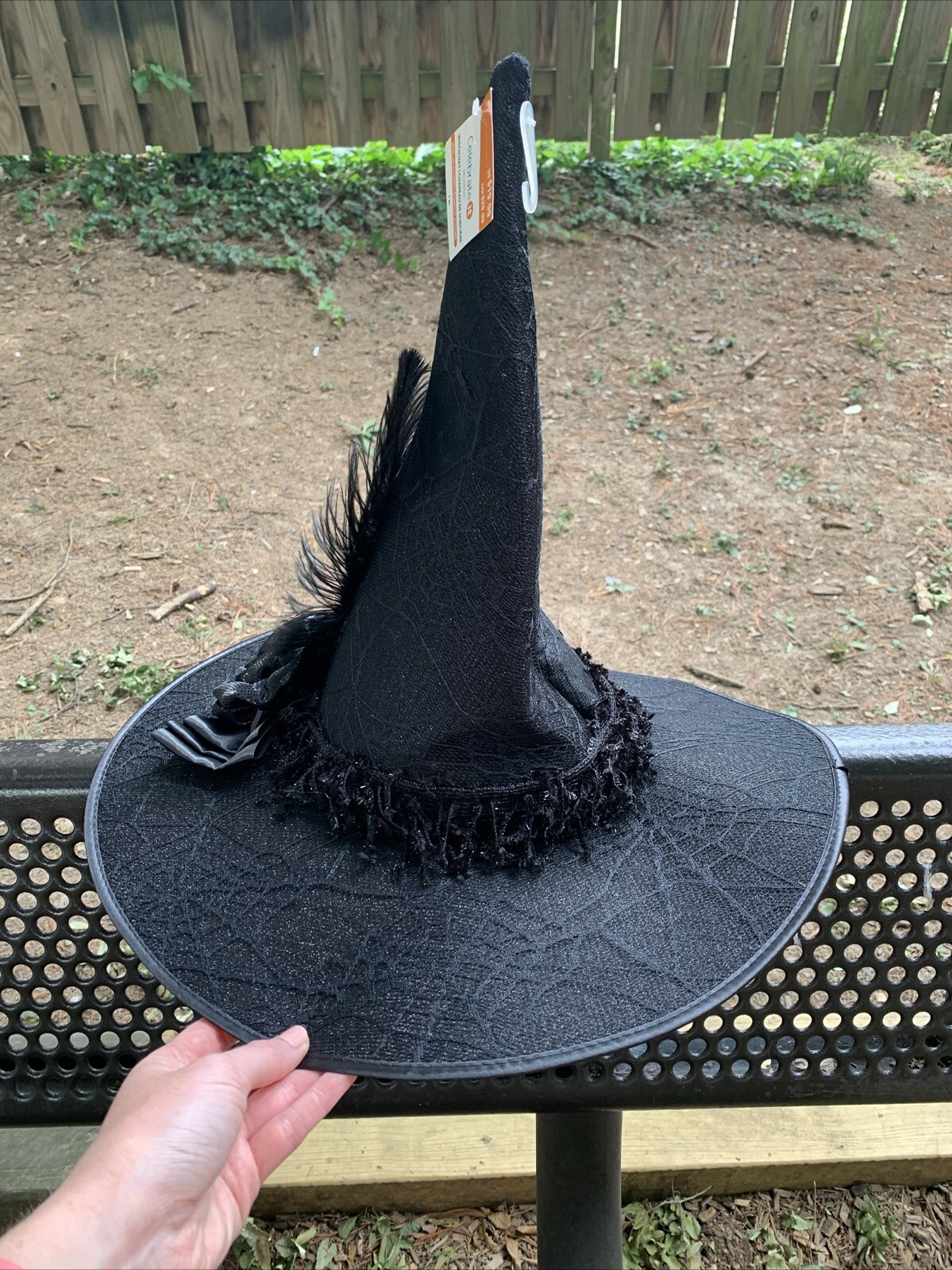 • Celebrate It Halloween Witch Hat Black Shimmer W/ Feather Sequin Roses In Bow