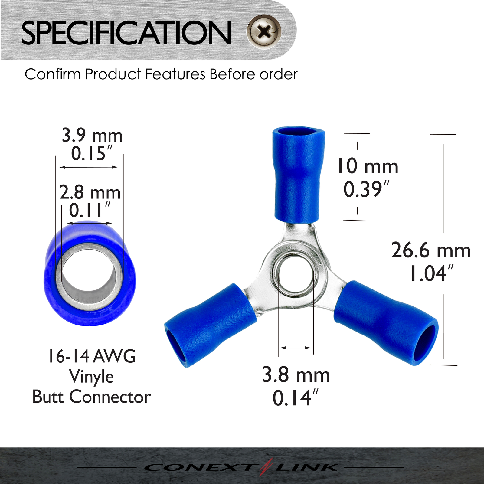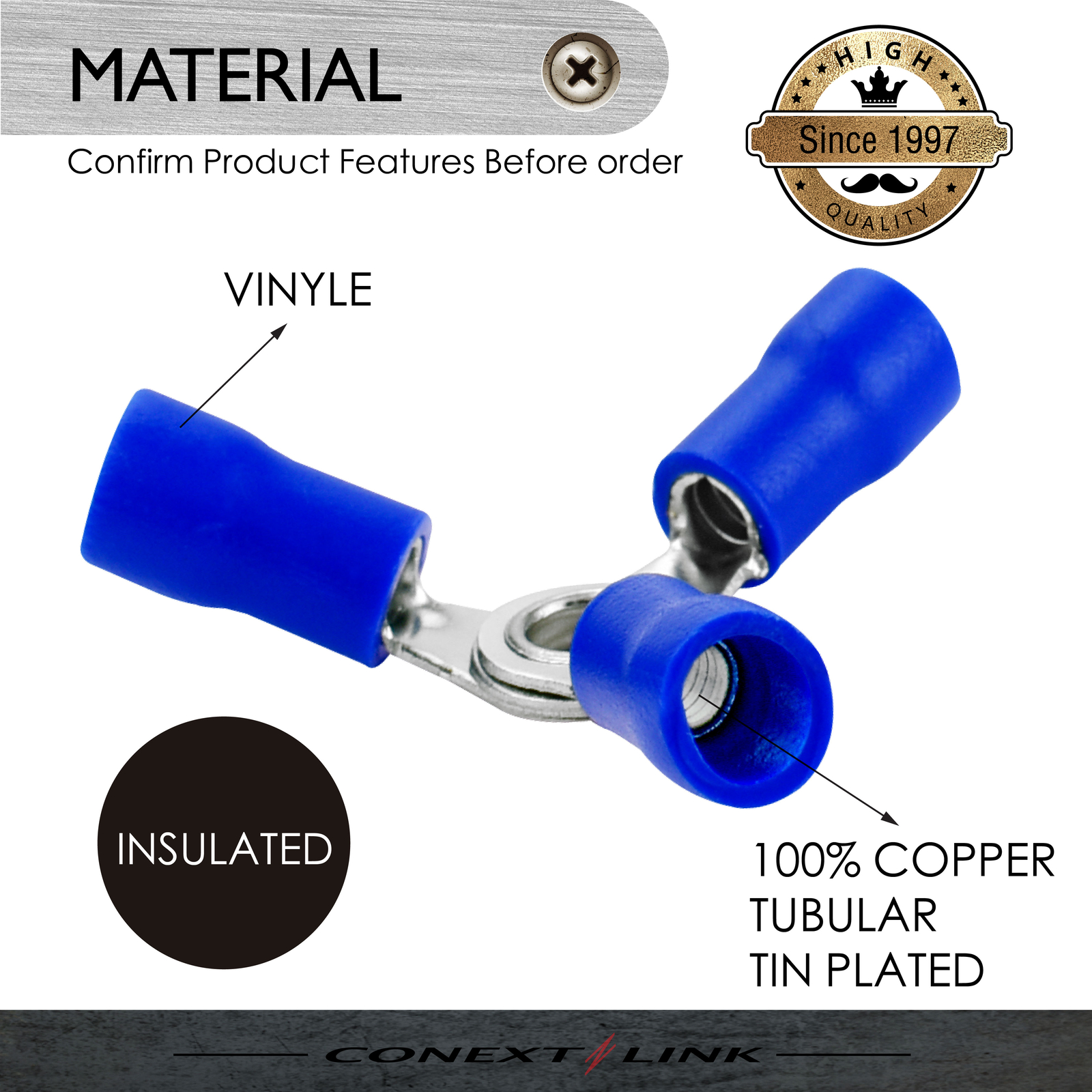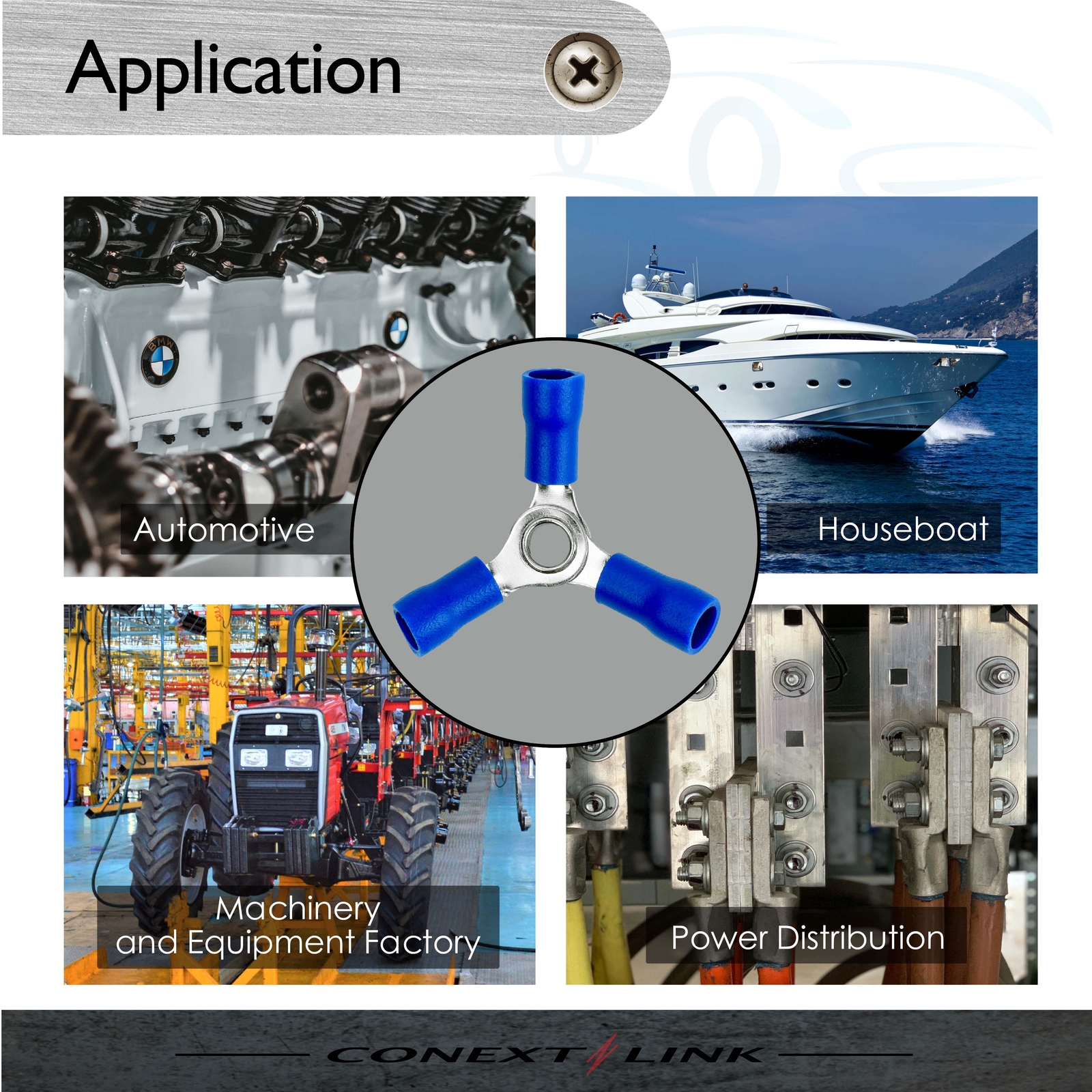 50 Wire Crimp 3 Way Y Ring Butt Connector Terminal Vinyl Blue 16-14 awg Gauge