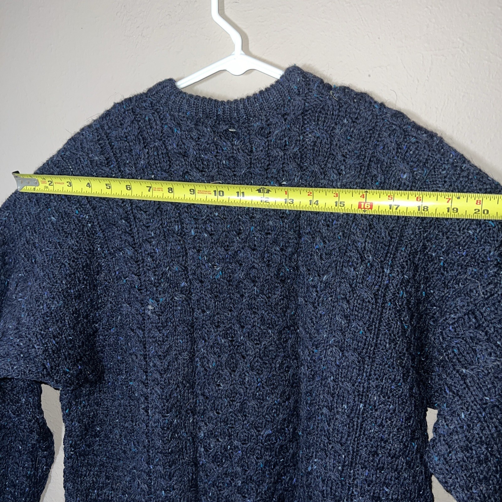 Carraig Donn Sweater Womens Xl Blue Wool Pullover Crew Neck Cable Knit Fisherman