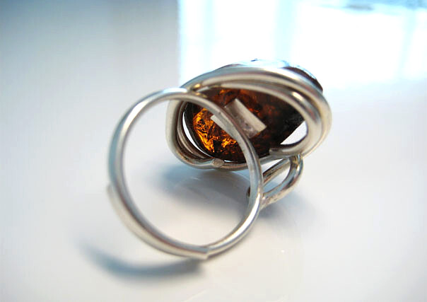 Beautiful Elegant Baltic Cognac AMBER Natural Ring Silver Plated 6 gr.