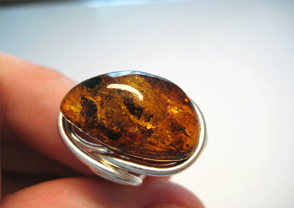как выглядит Beautiful Elegant Baltic Cognac AMBER Natural Ring Silver Plated 6 gr. фото