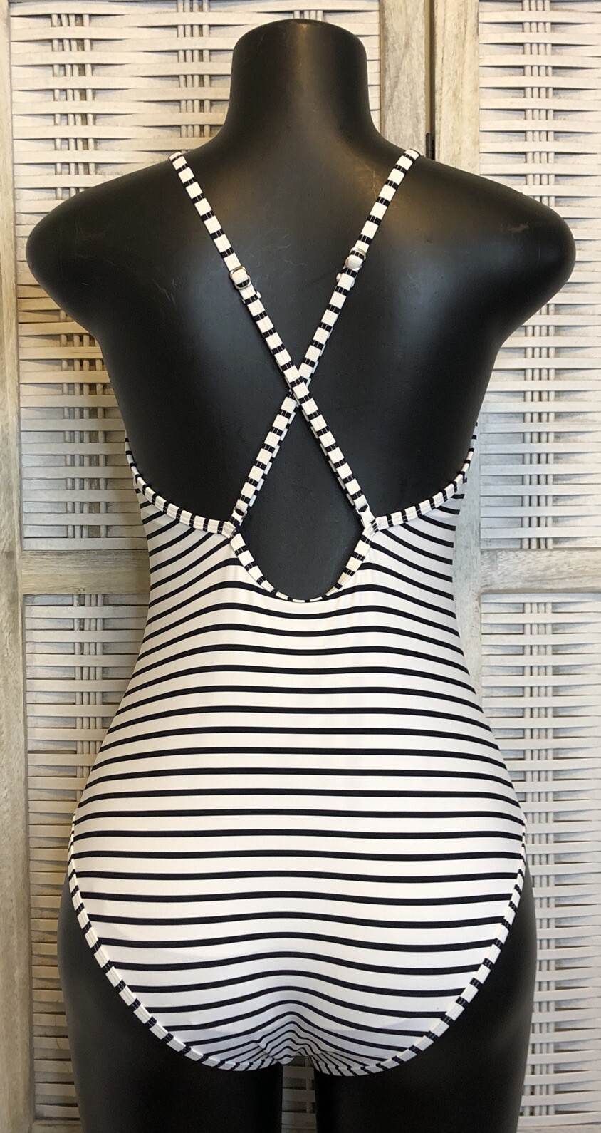 NWT Cupshe Womens One Piece Swimsuit Size XL Stripped White Black