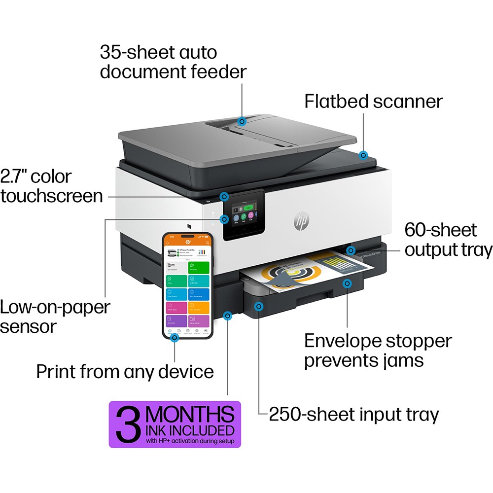 Hewlett Packard OfficeJet Pro 9125e All-in-One Printer, Color, Touchscreen - Ope