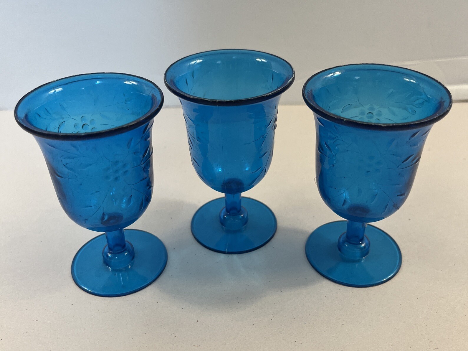 Vintage Children s Stemware With Flower Design , Set Of 3