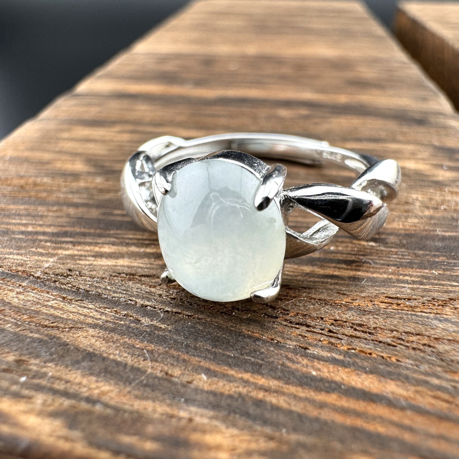 Adjustable Grade A Burma Jadeite Ring with S925 Sterling Silver