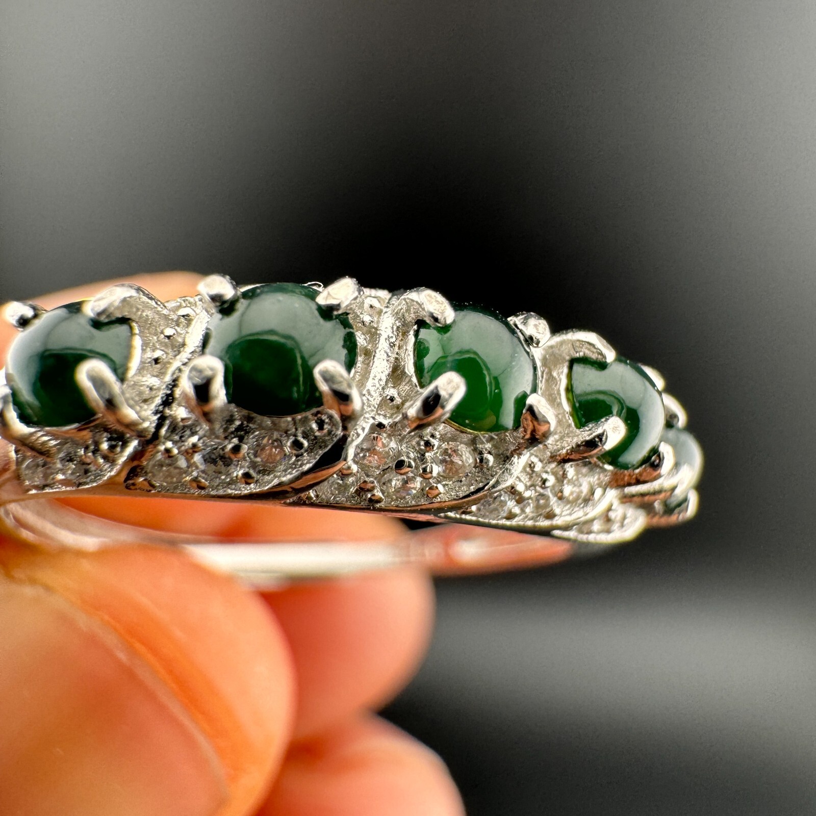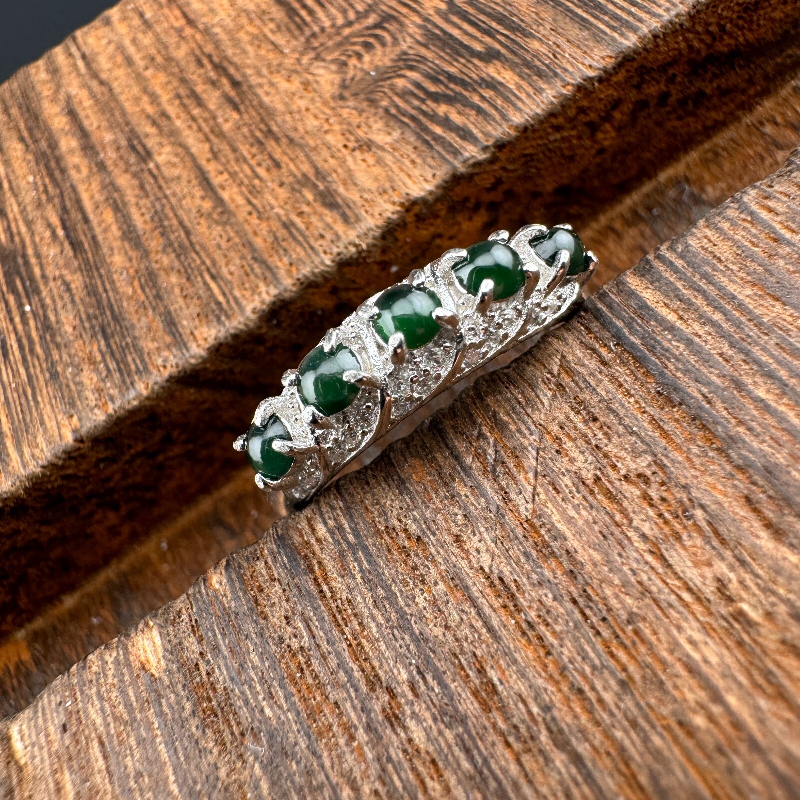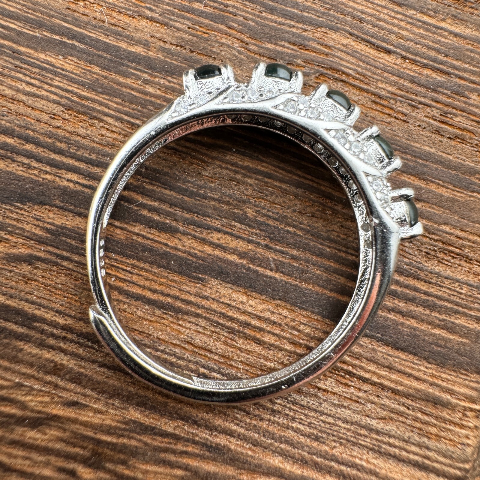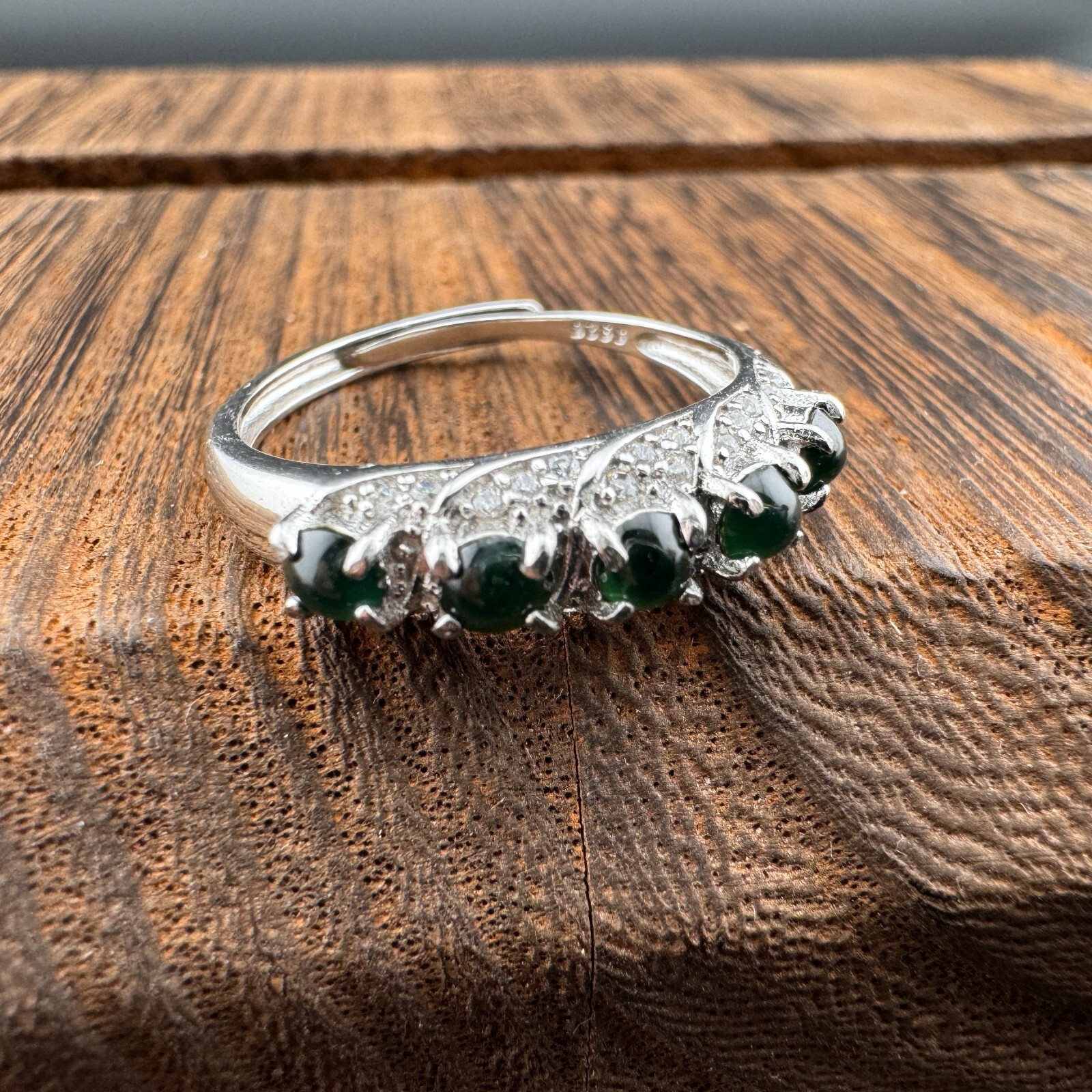 как выглядит Adjustable Grade A Burma Green Jadeite Ring with S925 Sterling Silver 5-Gemstone фото