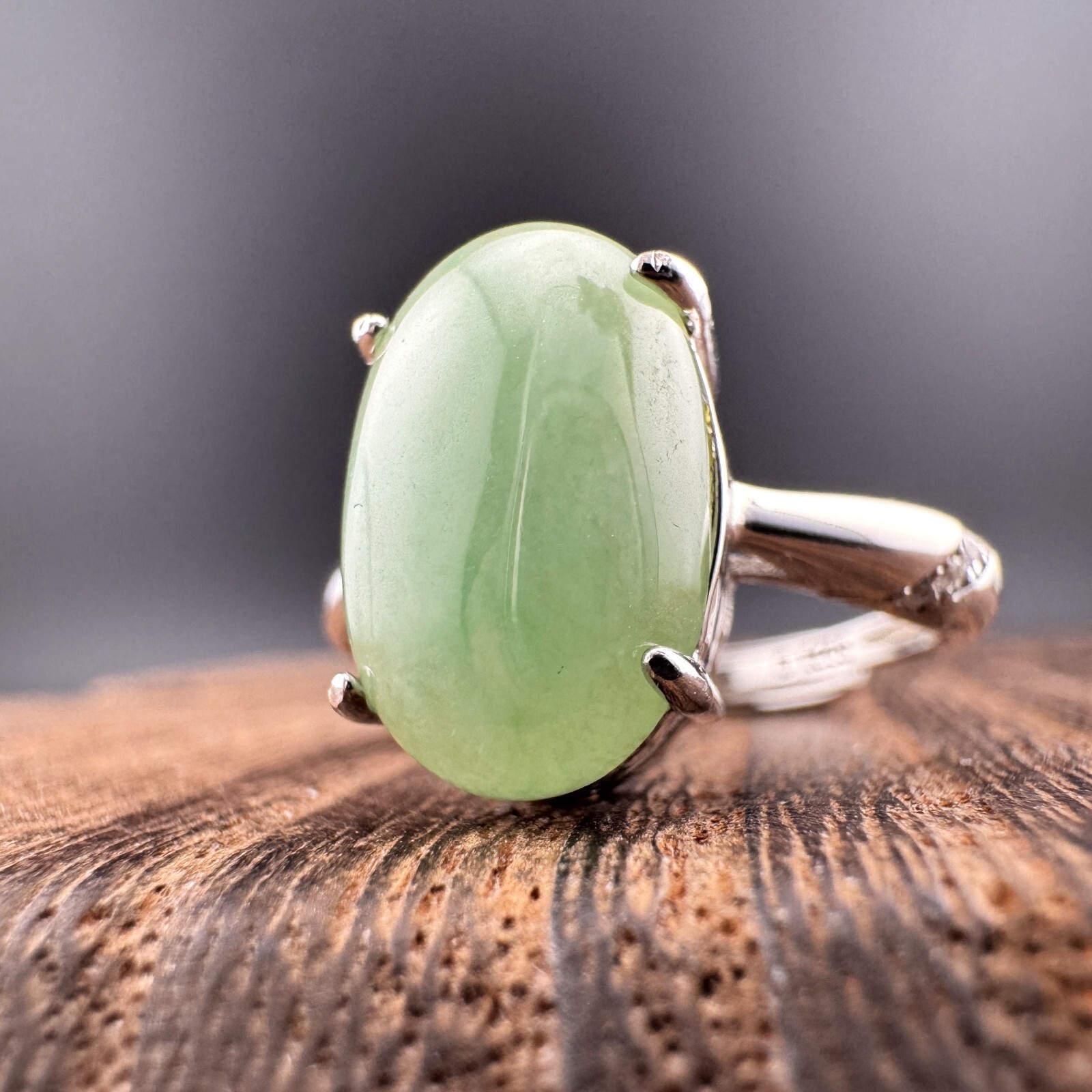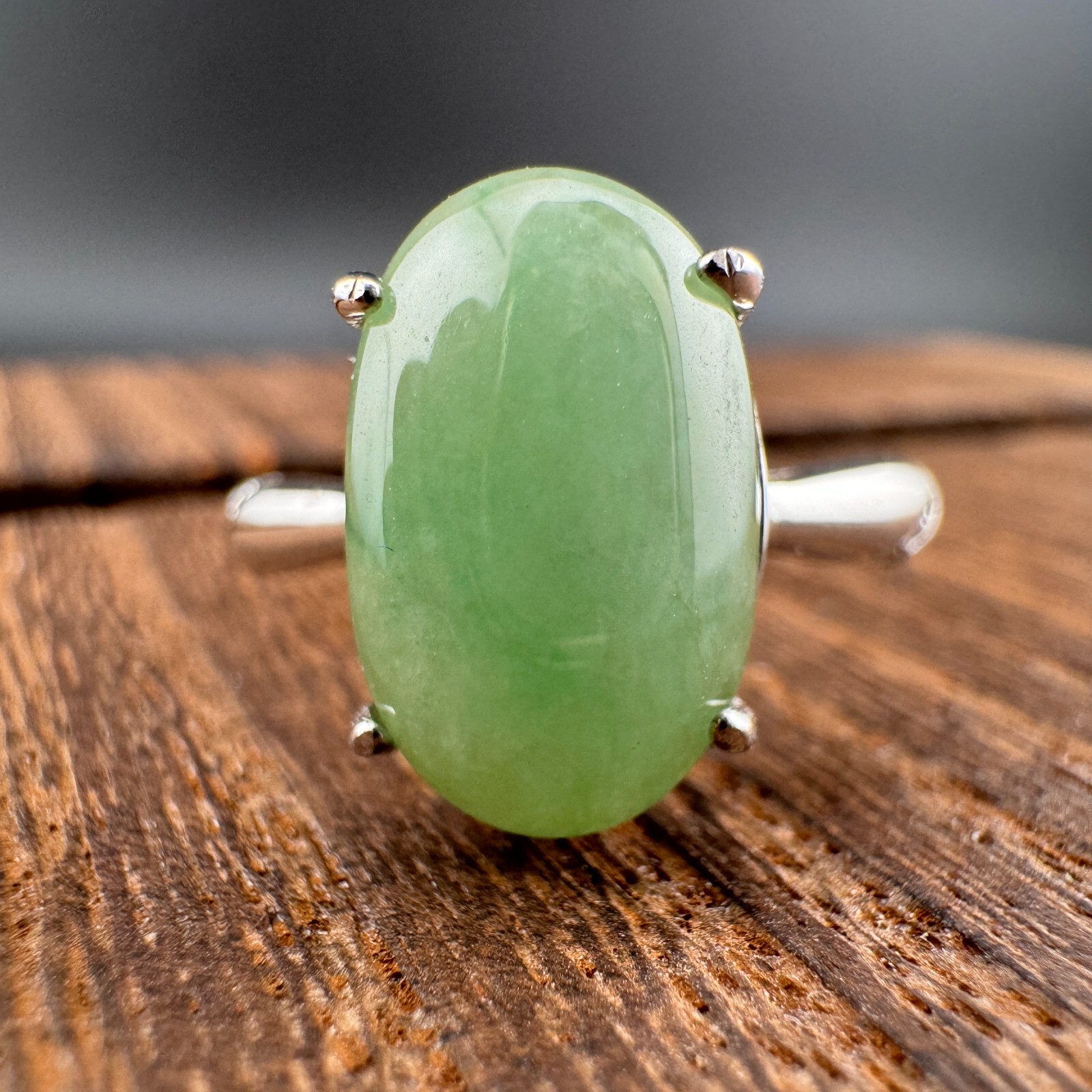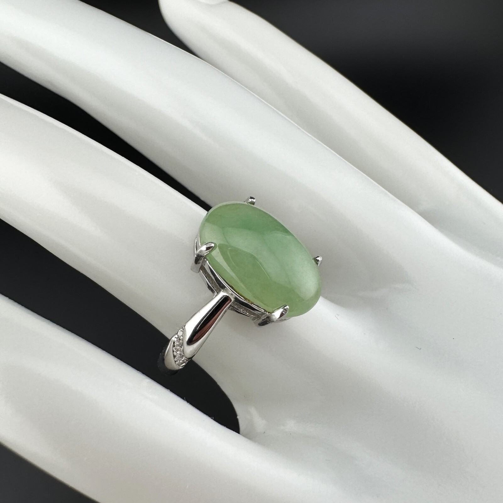 как выглядит Large Elegant Grade A Burma Jadeite Ring with S925 Sterling Silver, Green Color фото
