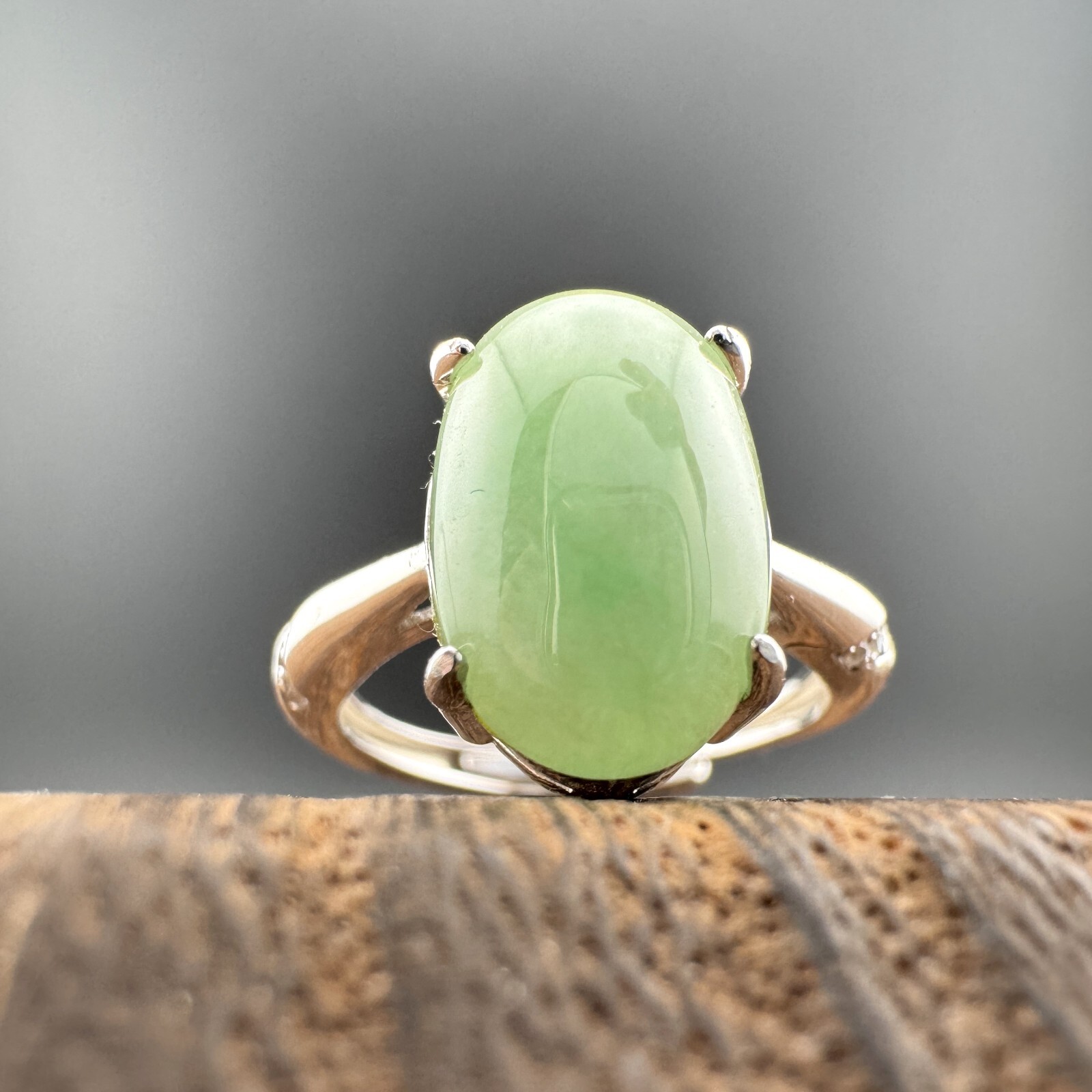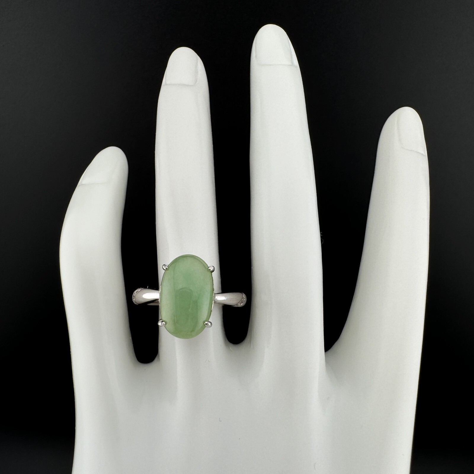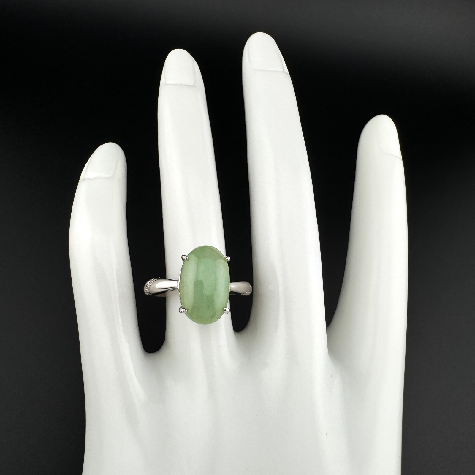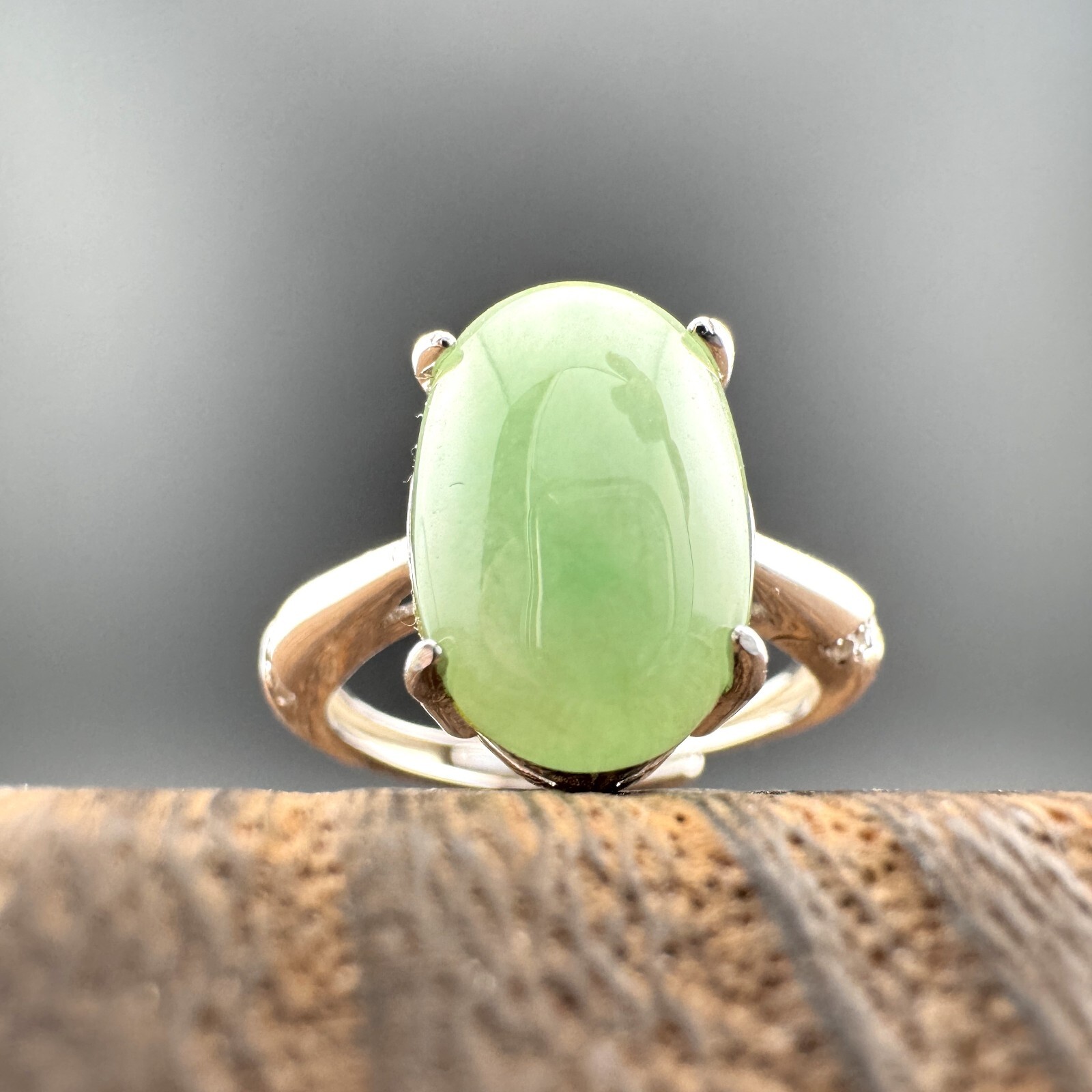как выглядит Large Elegant Grade A Burma Jadeite Ring with S925 Sterling Silver, Green Color фото