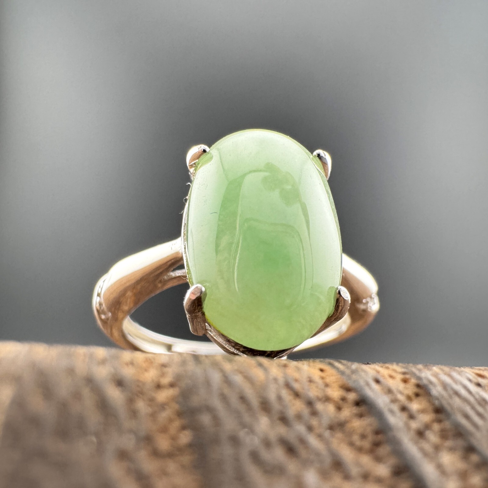 Large Elegant Grade A Burma Jadeite Ring with S925 Sterling Silver, Green Color