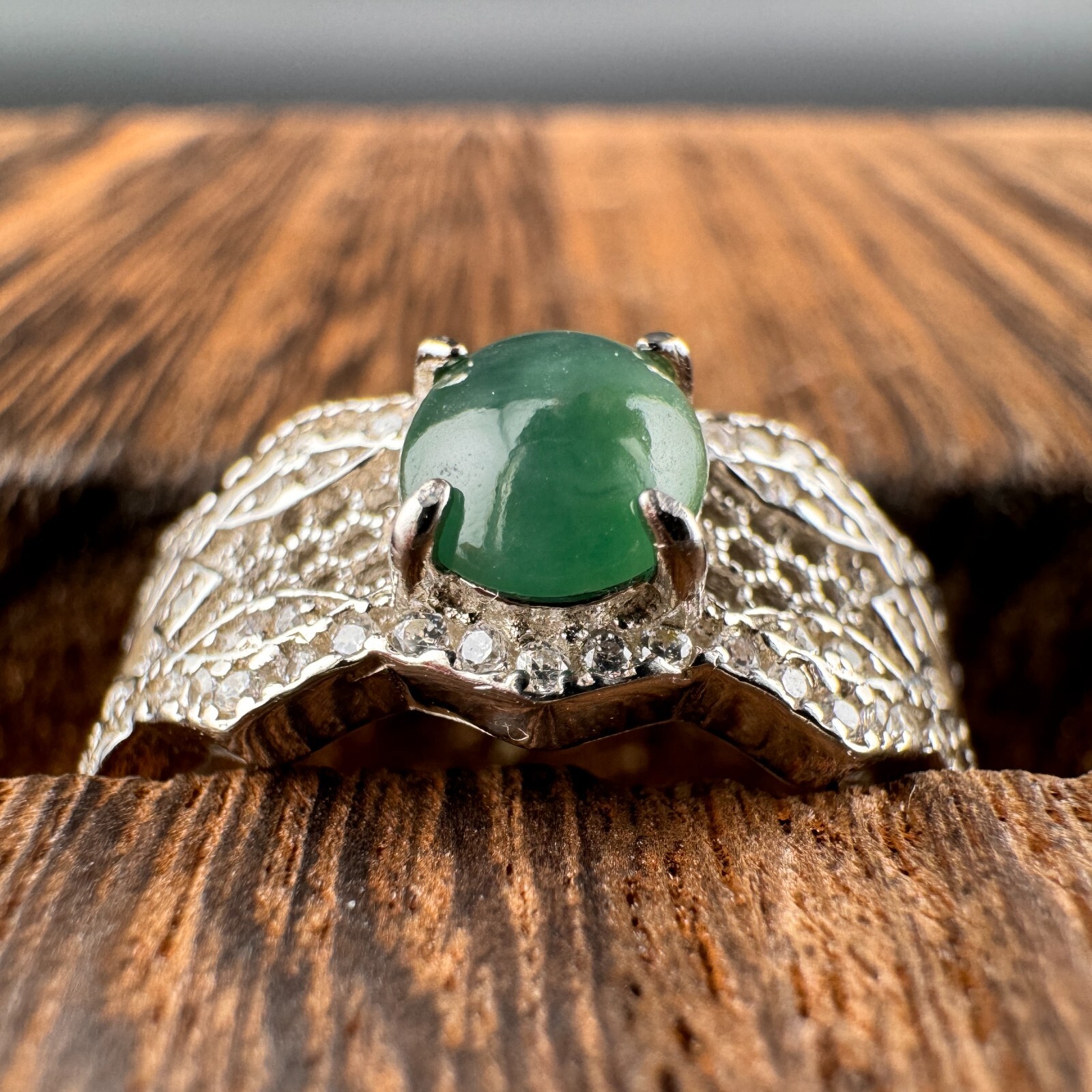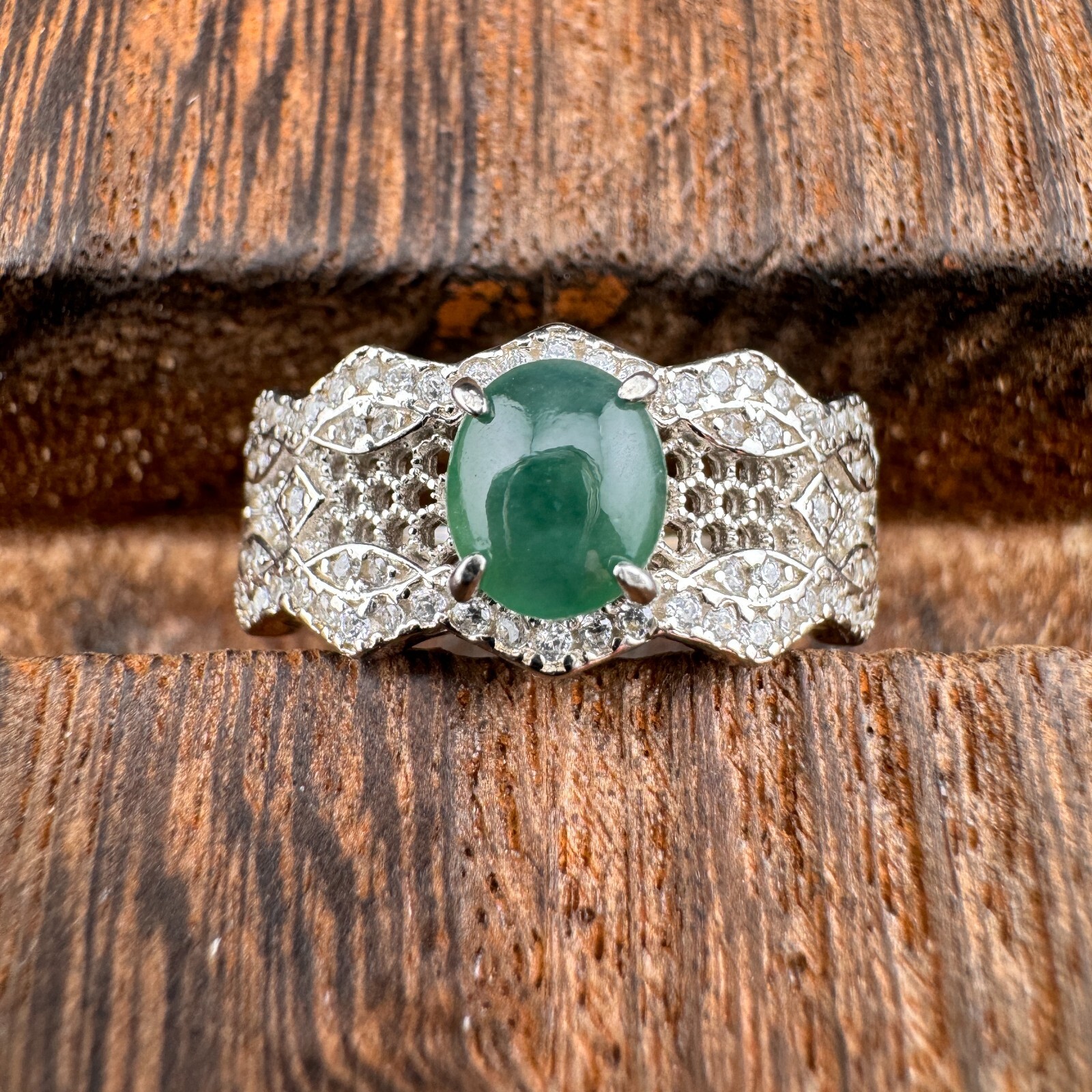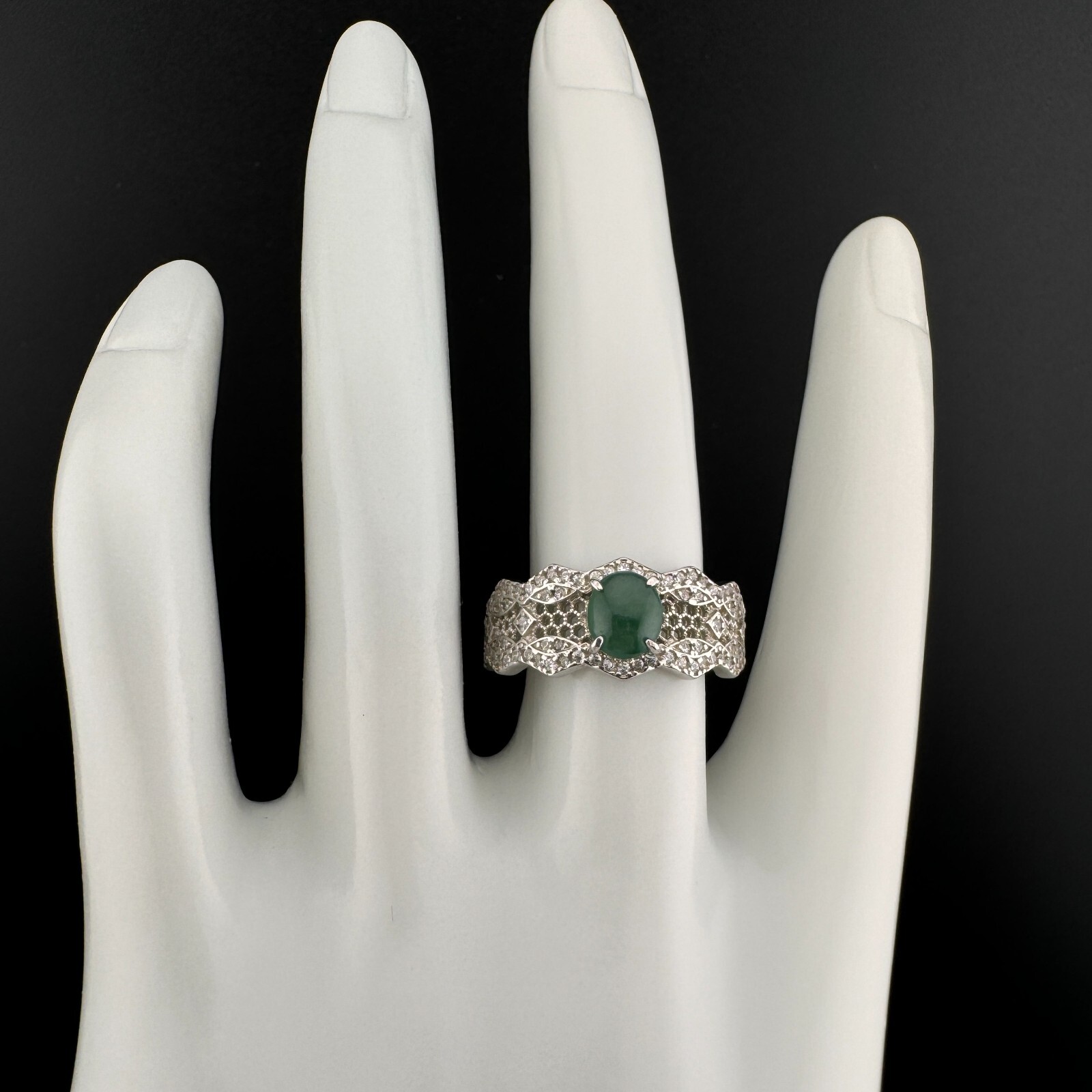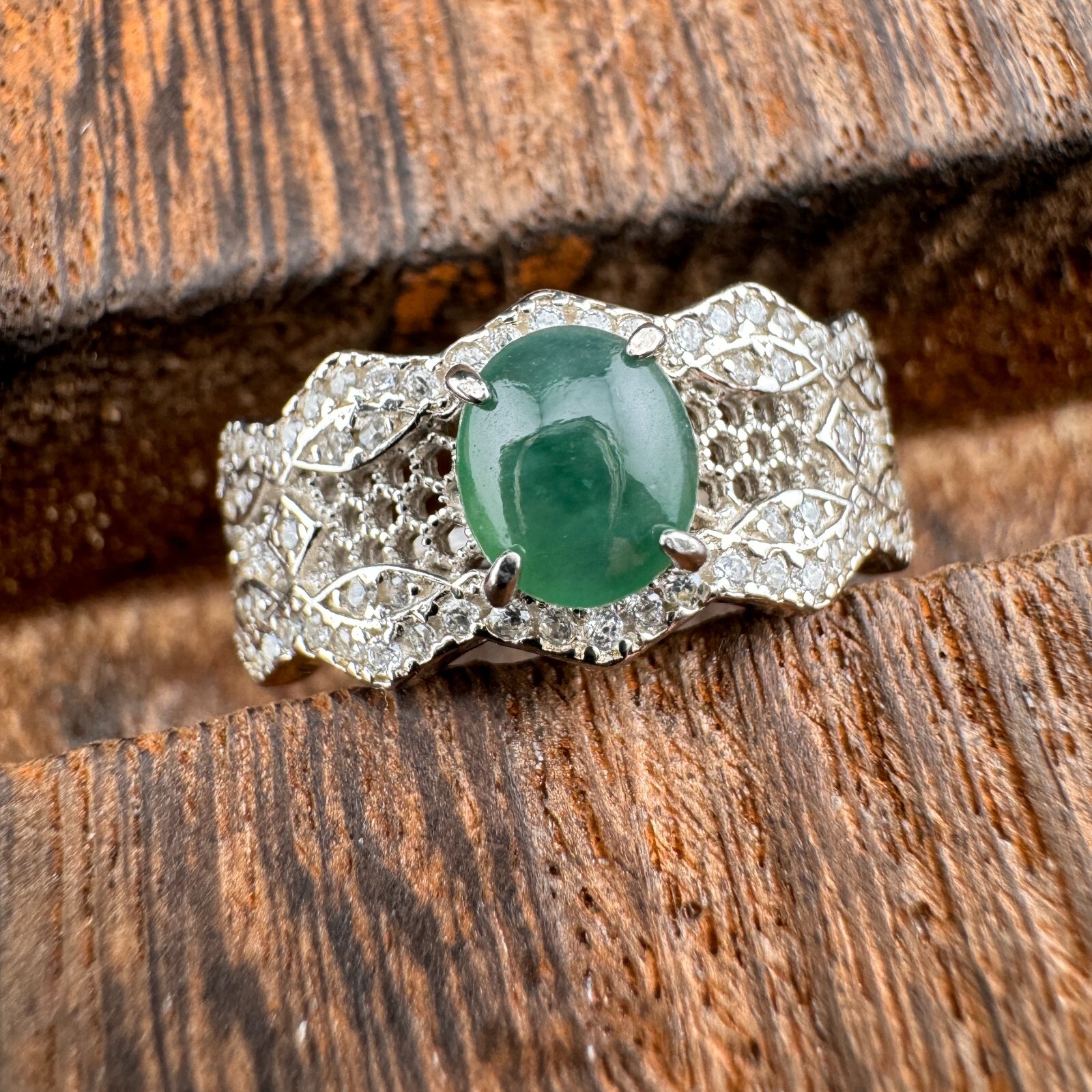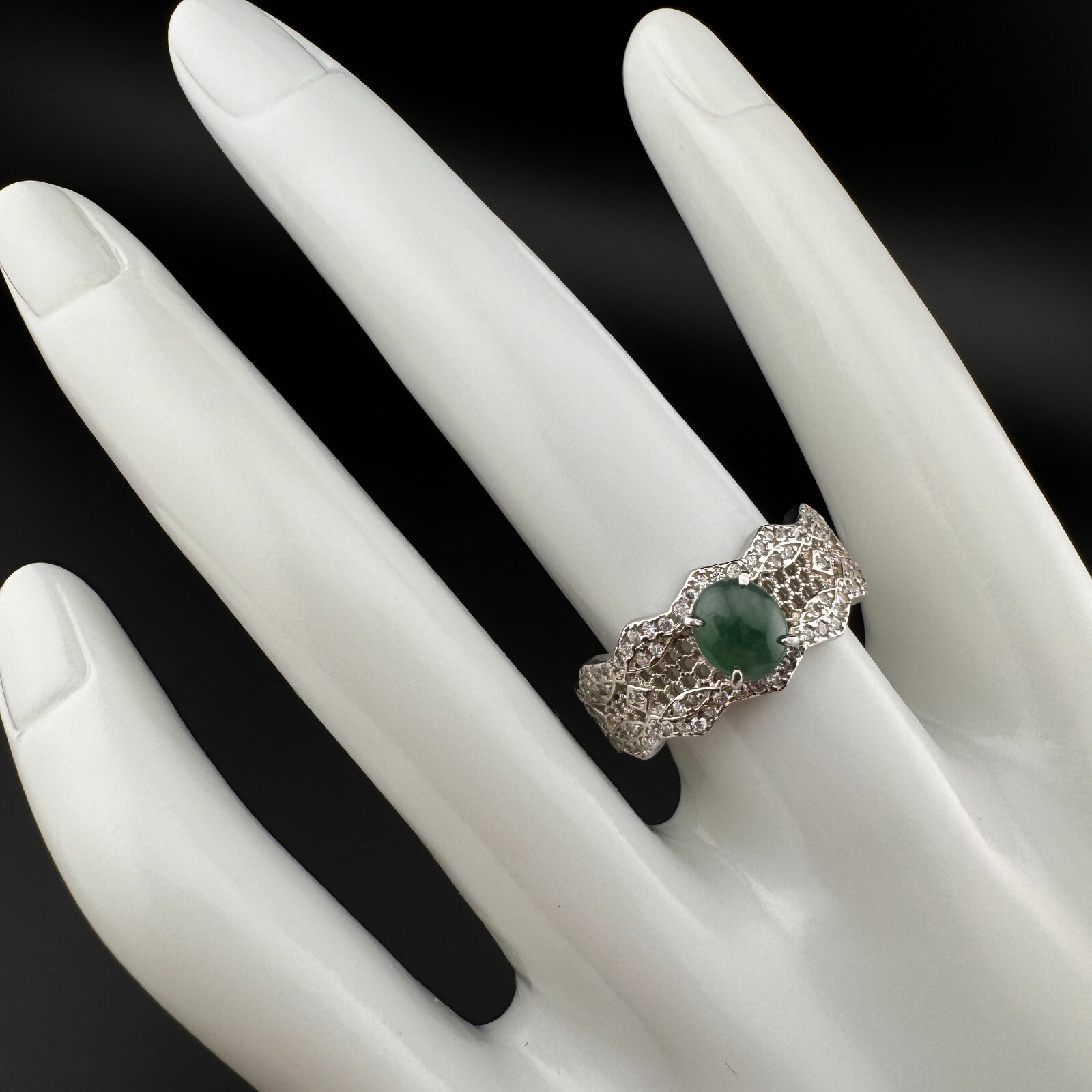 как выглядит Adjustable Grade A Burma Jadeite Ring with S925 Sterling Natural Gemstone фото