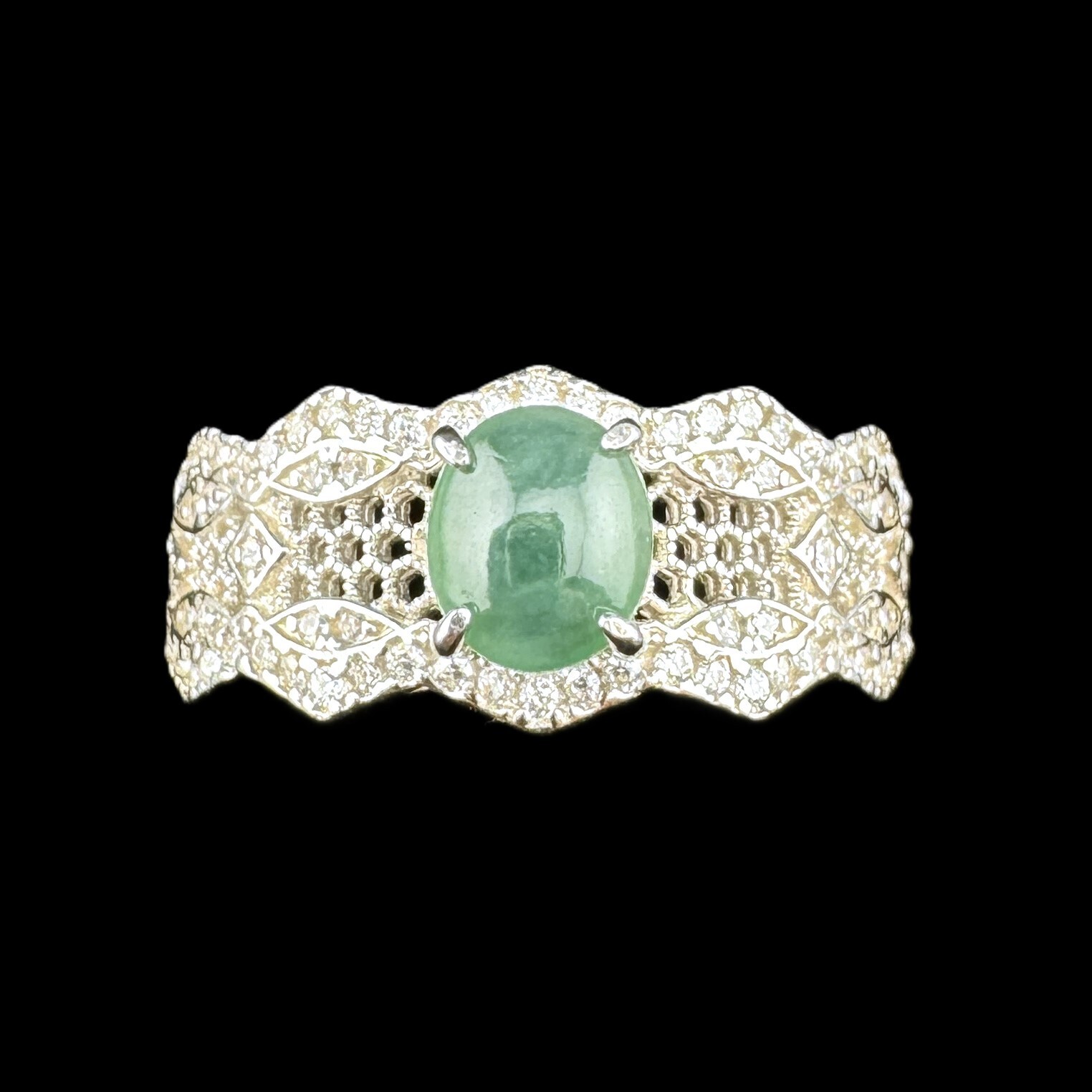 Adjustable Grade A Burma Jadeite Ring with S925 Sterling Natural Gemstone