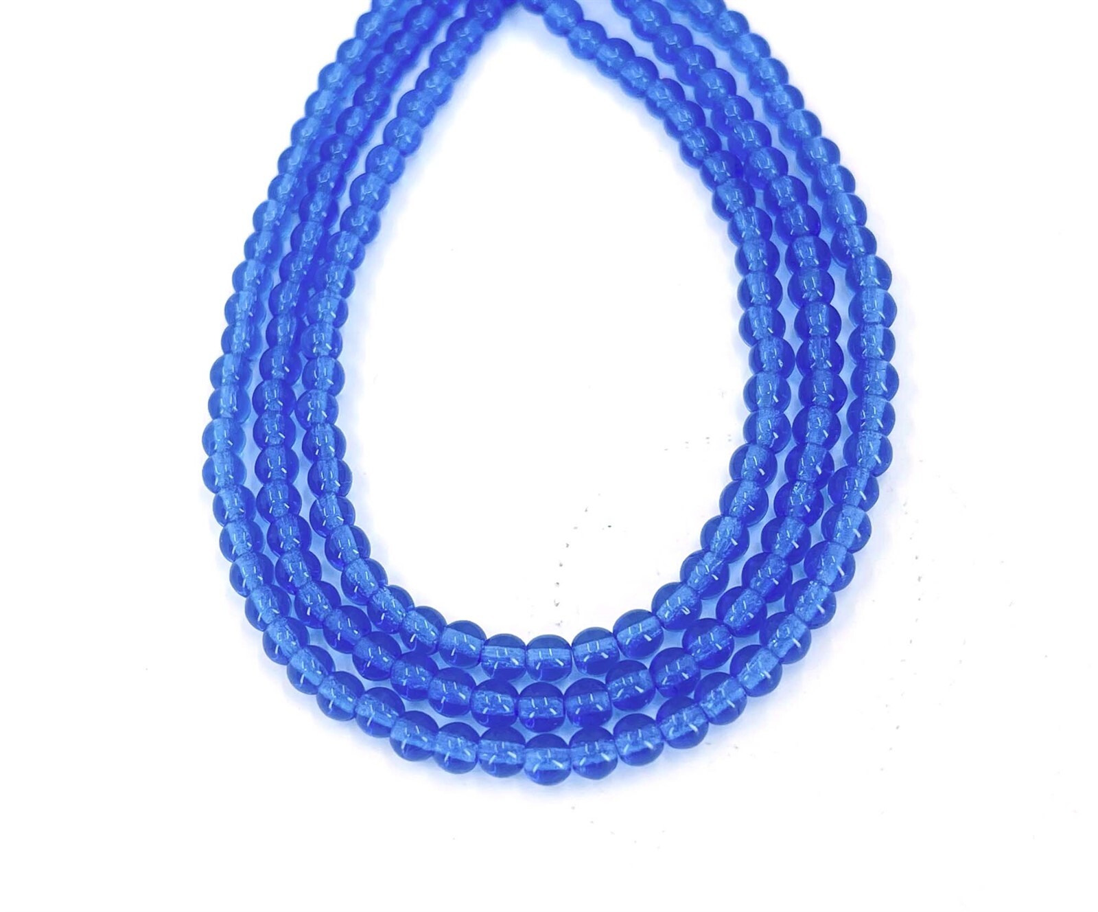 как выглядит 100 Czech Sea Glass Round Beads - Sapphire 4mm фото