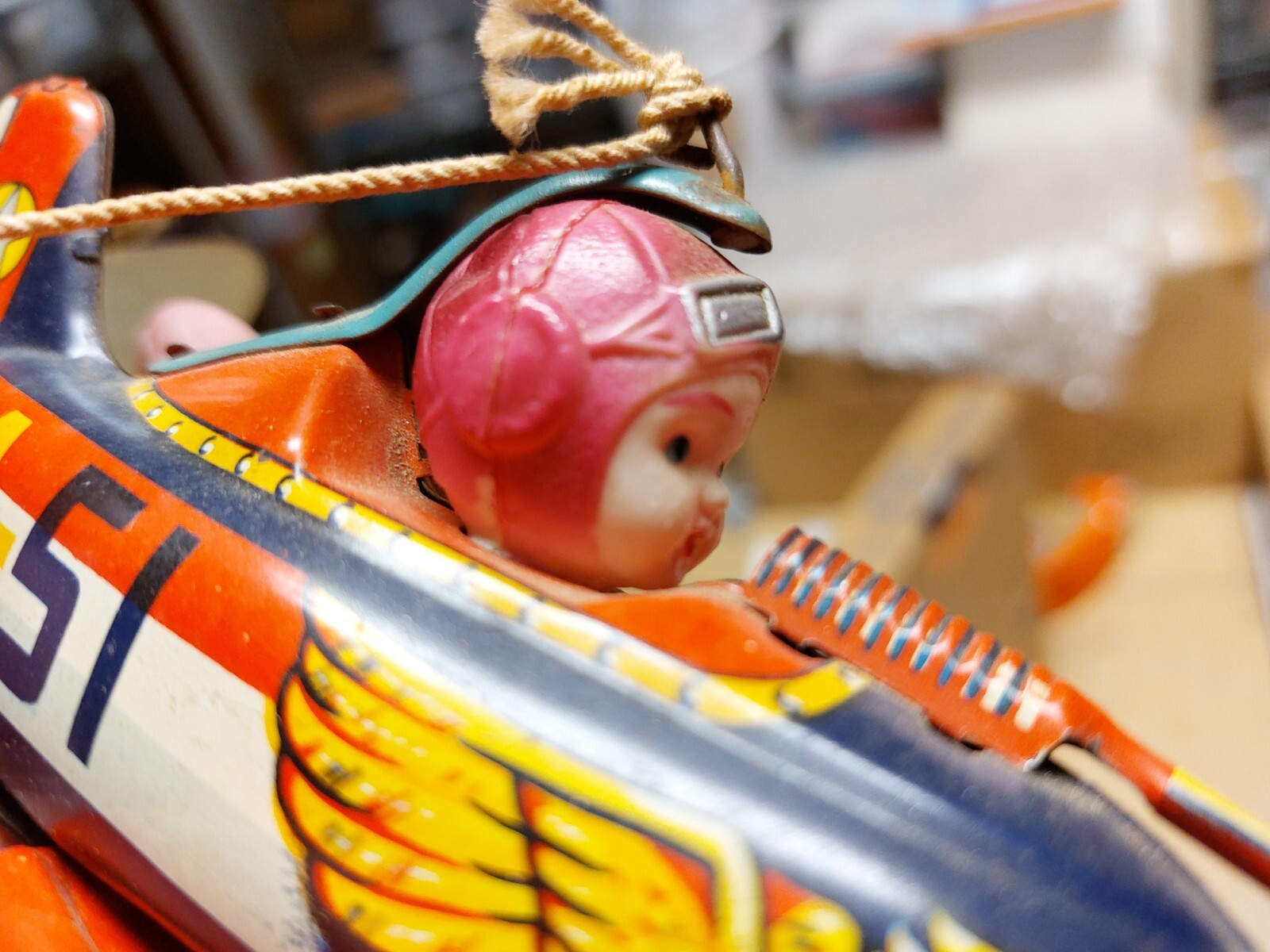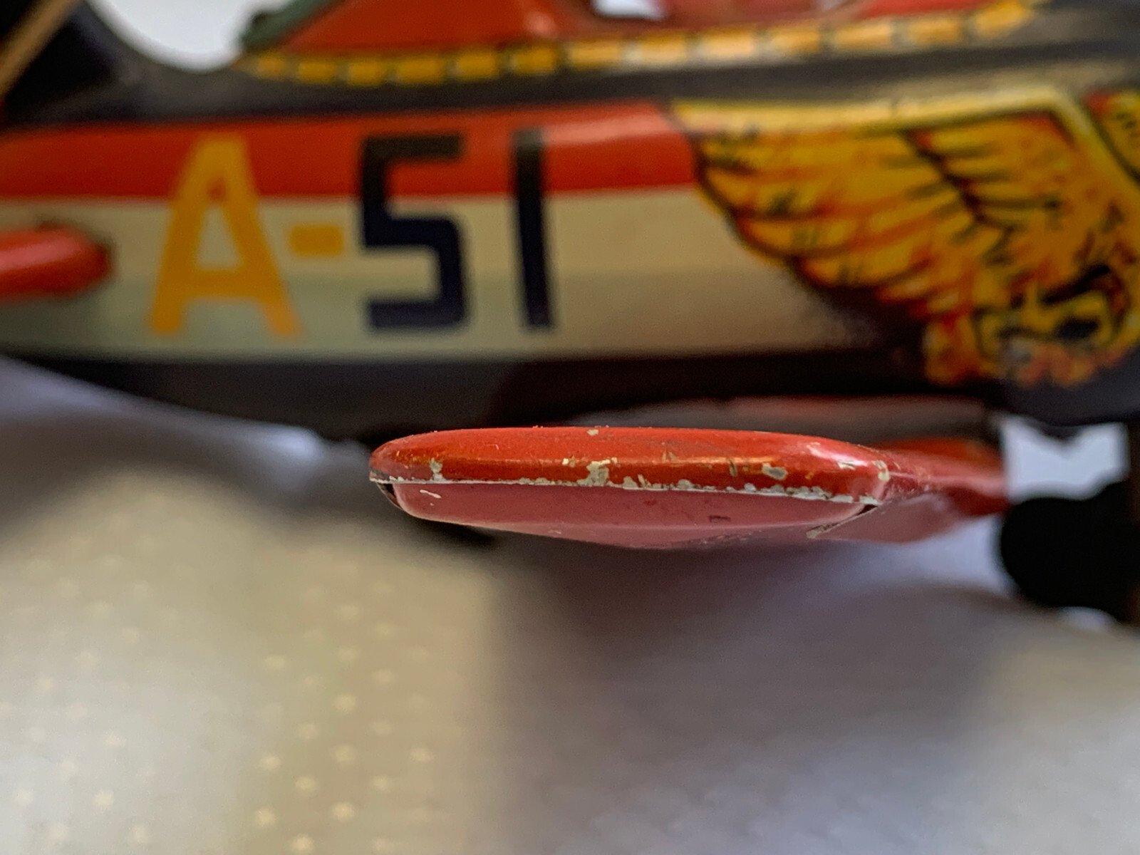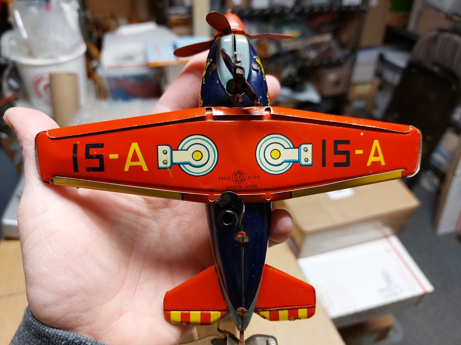 как выглядит Vtg Tin Litho Tether Plane Toy Wind Up 15-A W/ Celluloid Pilot Working Japan фото