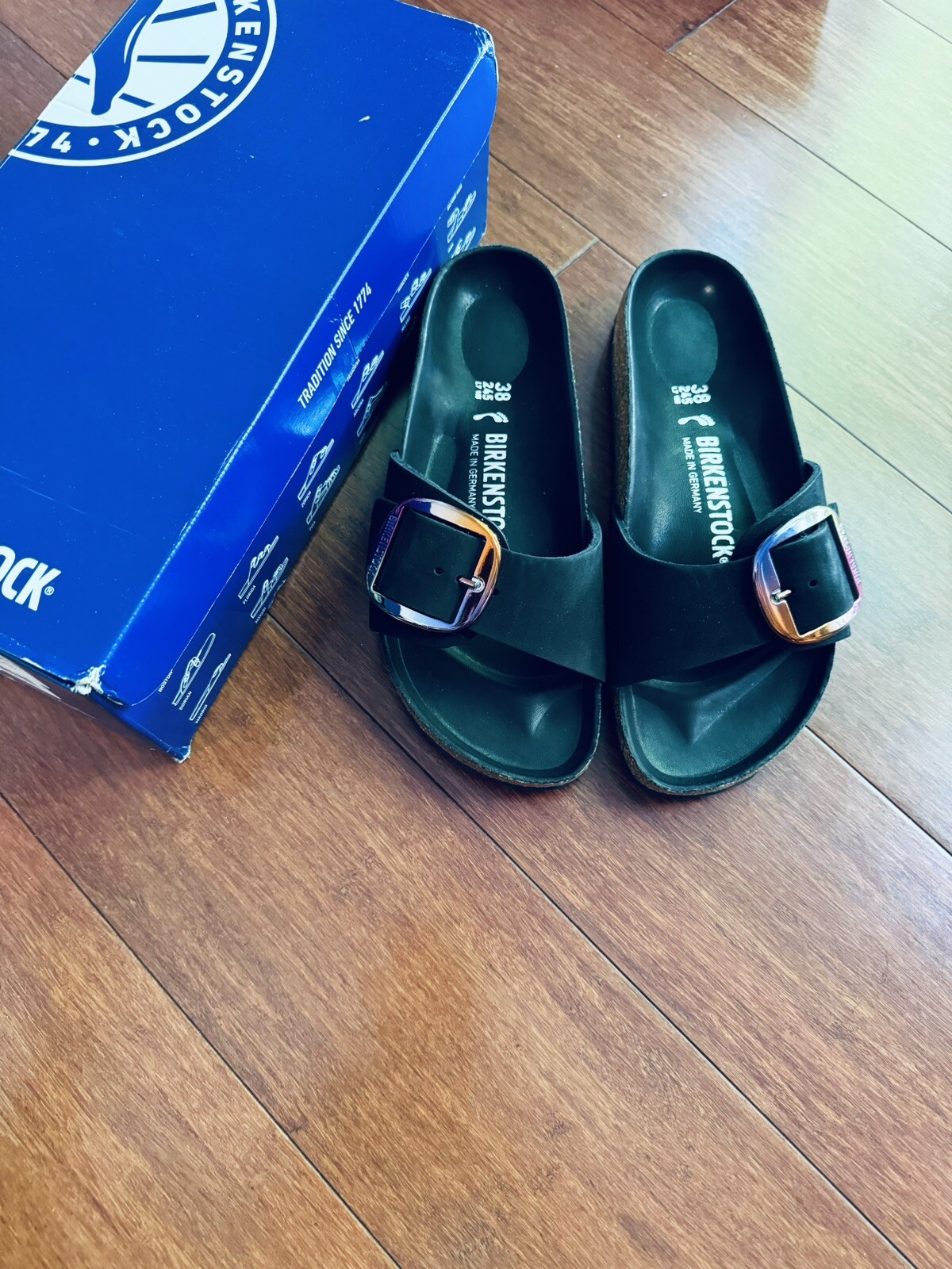 Birkenstock Madrid Iridescent Big Buckle Slide Sandals Black Eu 38 US 7-7.5