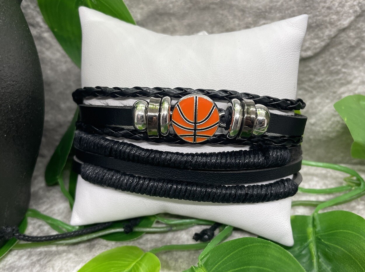 2 PC Basketball Leather Bracelet Stackable Adjustable Tie New B2810