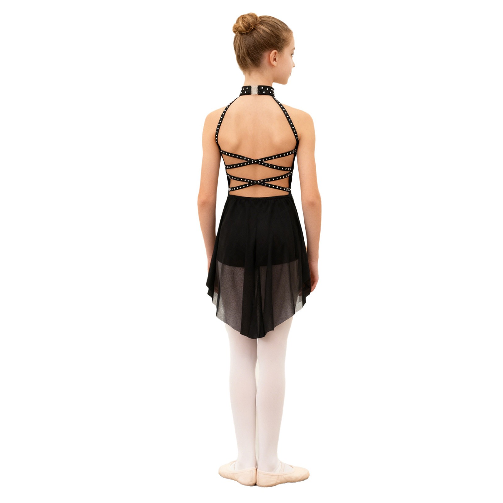 Kids Girls Figure Skating Cutout Strappy Rhinestones Leotard Ballet Dresses