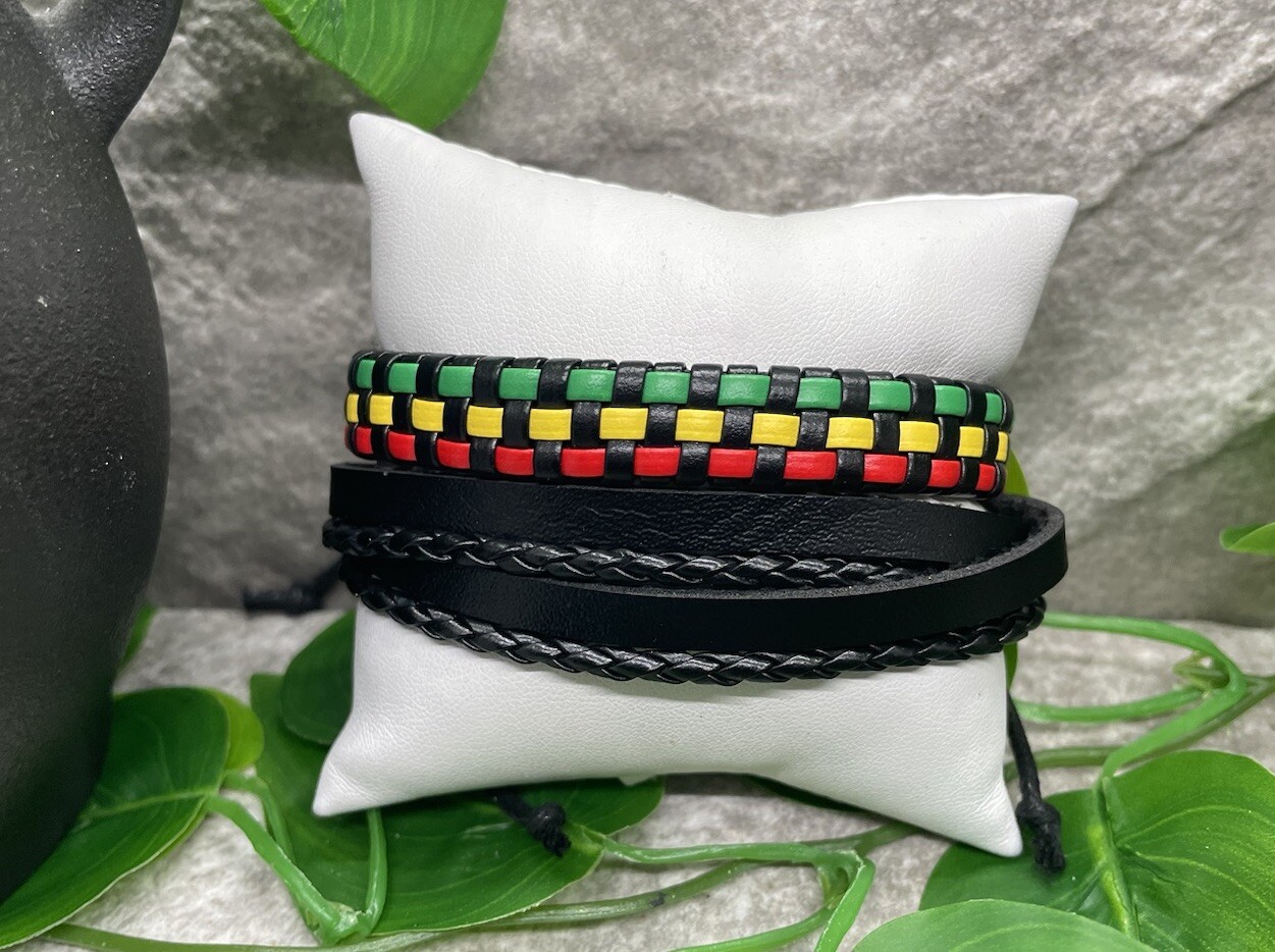 2 PC Leather Bracelet Stackable Adjustable Tie New Free Ship B2846