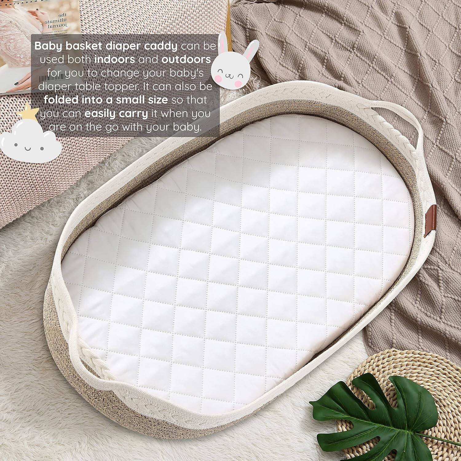 как выглядит Baby Changing Basket Ldvine Diaper Caddy Foam Pad Newborn Storage Woven FASHIP фото
