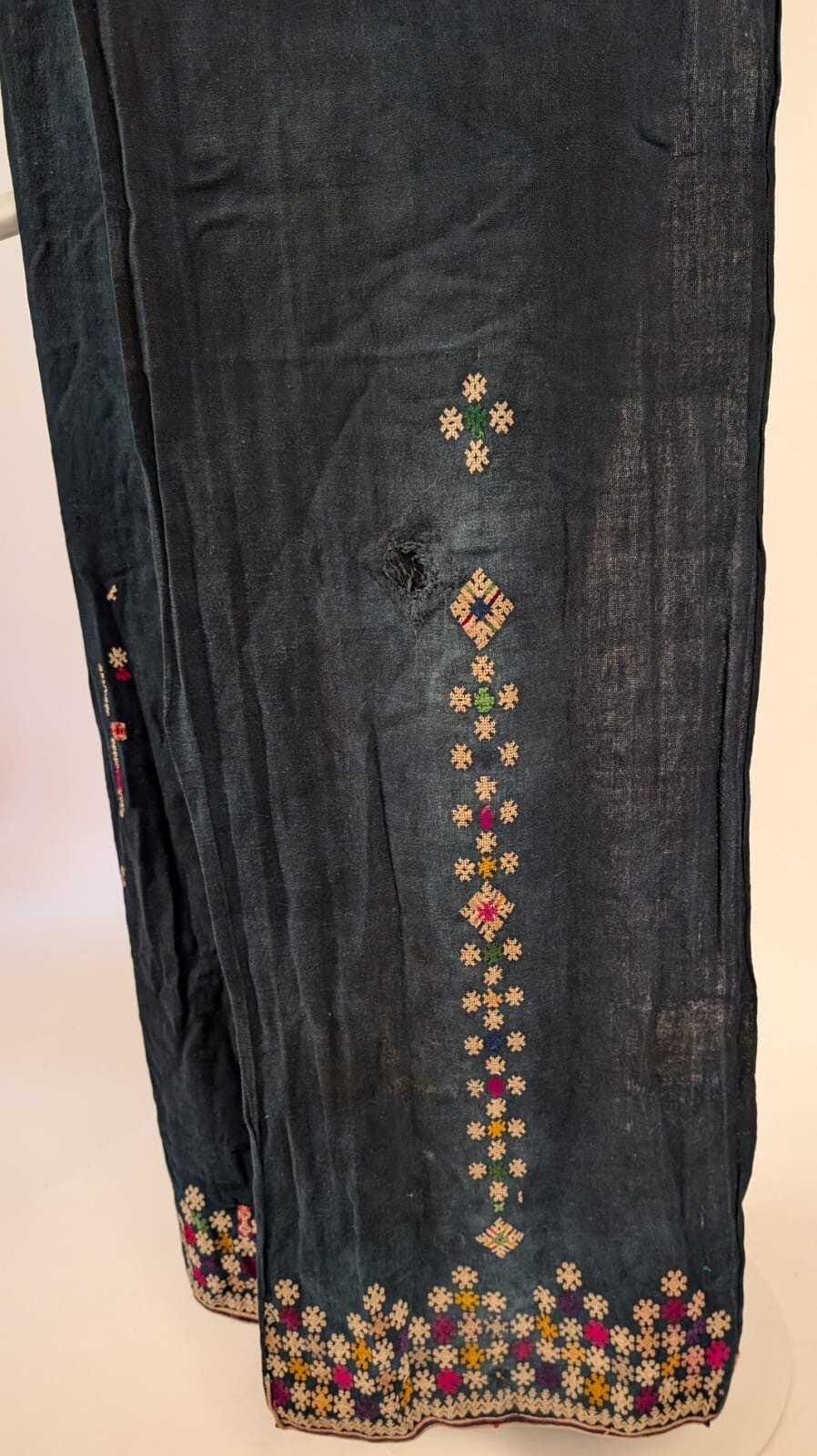 как выглядит ANTIQUE ETHNIC HAND EMBROIDERED INDIGO LINEN SCARF / SHAWL фото