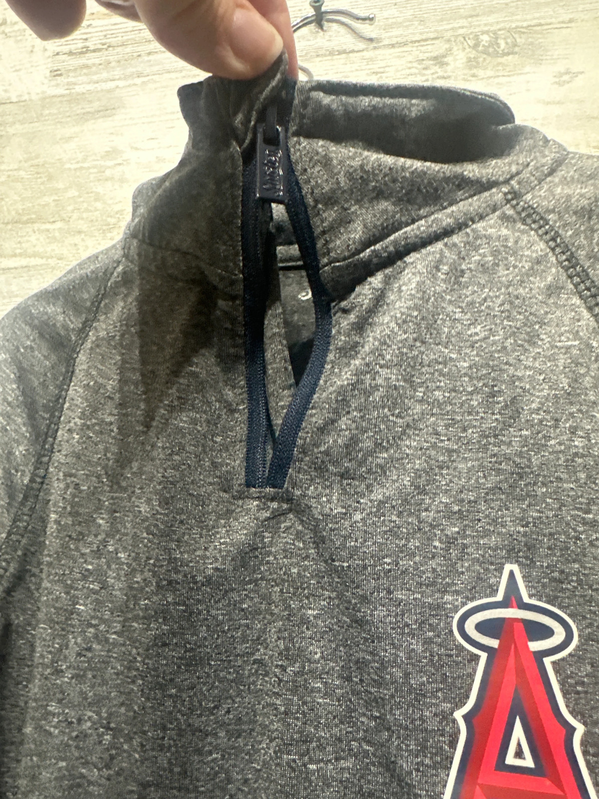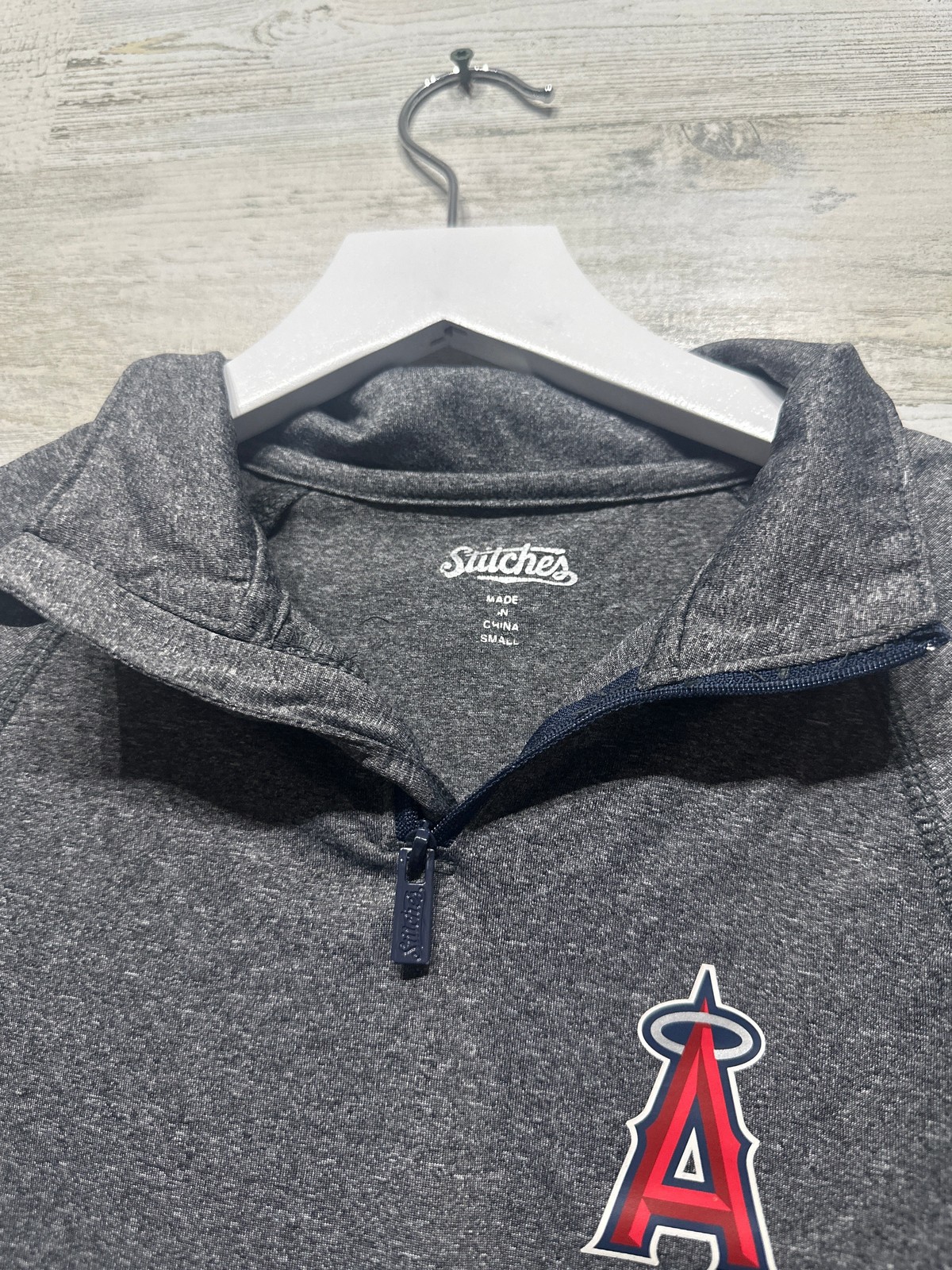 как выглядит Boys Size 10-12 Small Stitches Angels Quarter Zip Drifit Shirt - Play Conditi фото