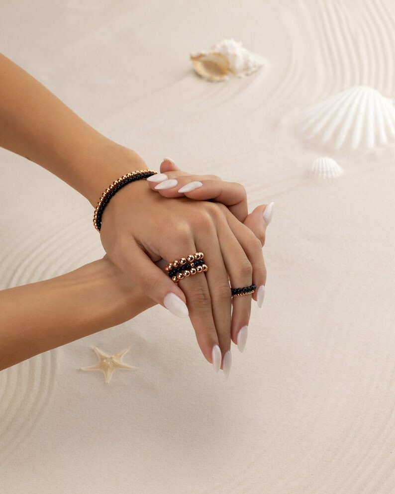 как выглядит A Black Onyx Smooth Round Gemstone Beads Handmade Adjustable Rings For Women фото