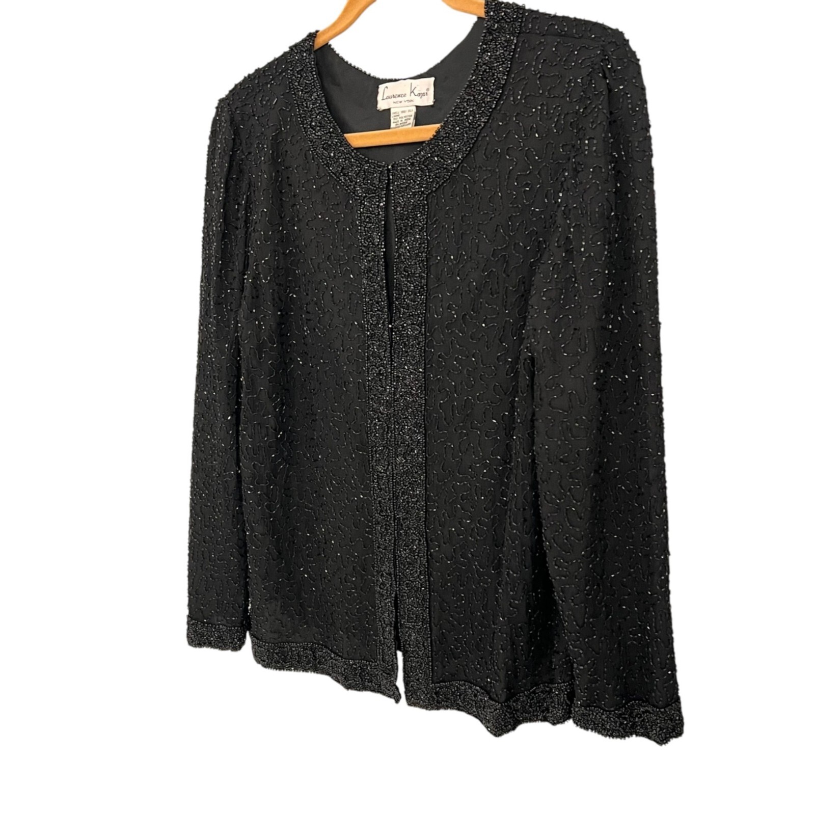как выглядит Lawrence Kazar Womens Black Silk Beaded Jacket Vintage Medium фото