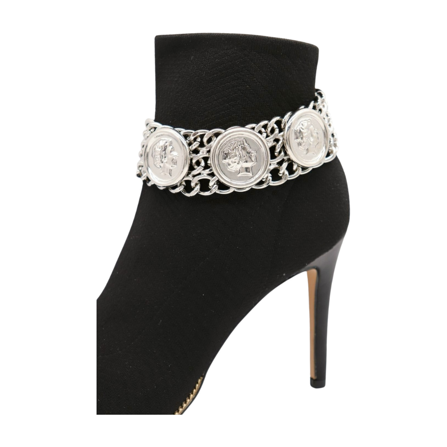 Women Silver Metal Boot Chain Bracelet Coin Medallion Shoe Anklet Charms Add On