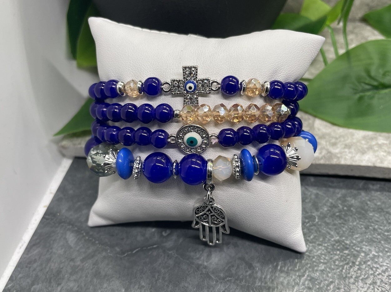 4 PC Handmade Boho Beaded Stackable 7 Plus Stretch Charm Bracelet Set B3021