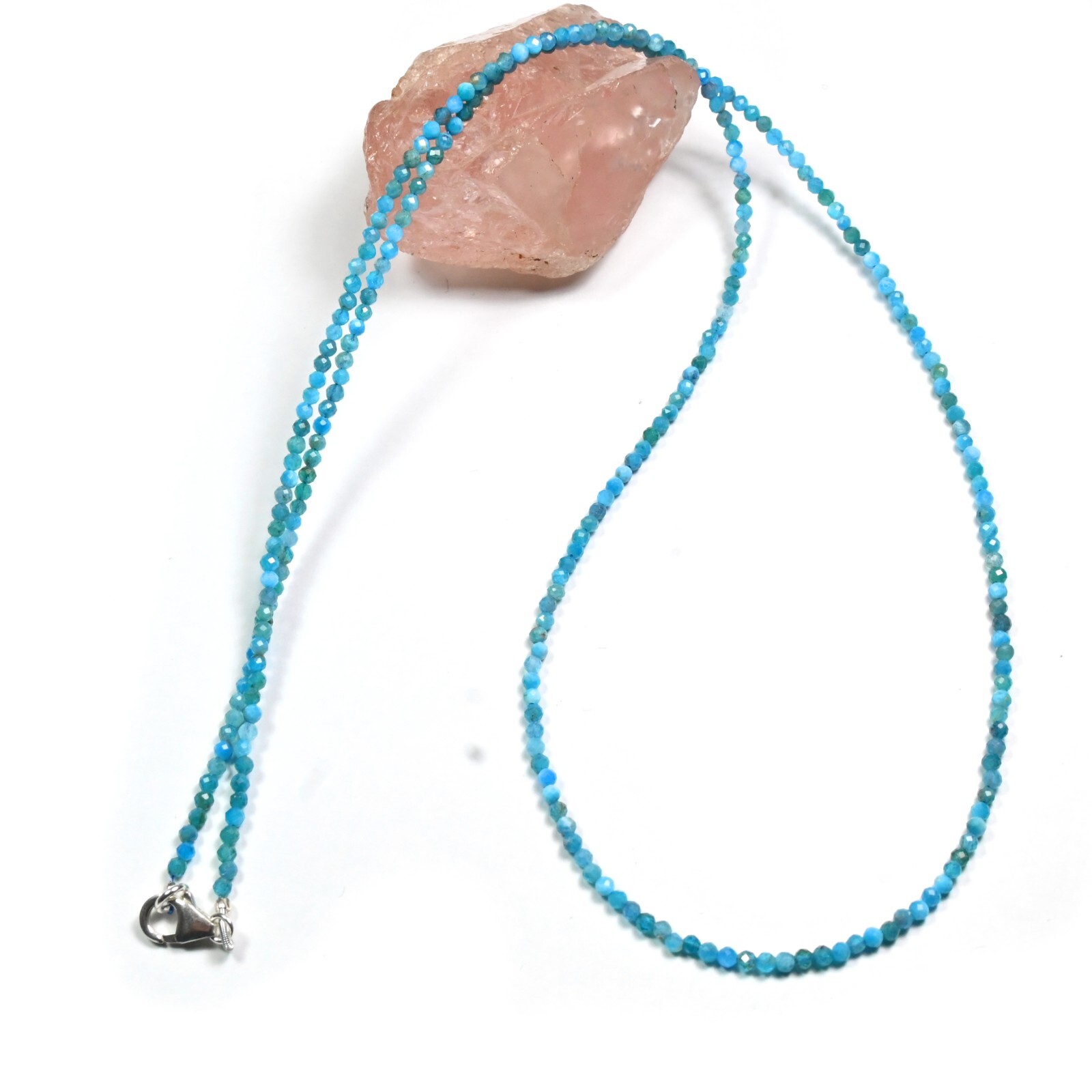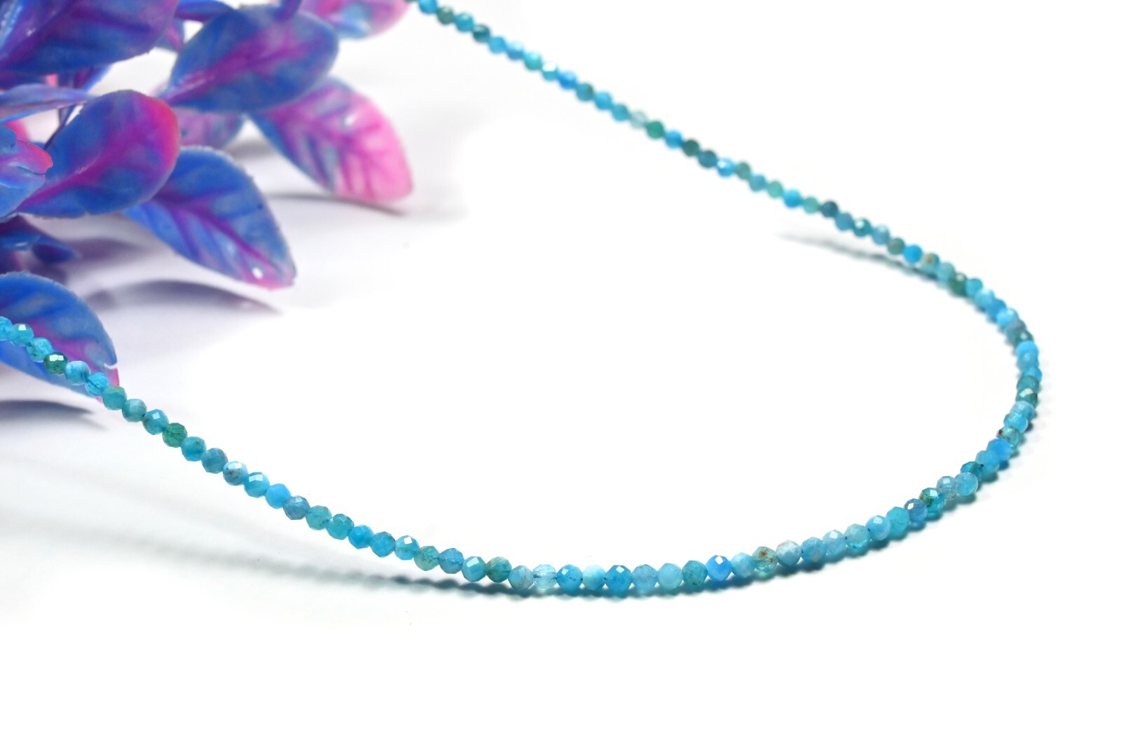 как выглядит A Dainty Blue Apatite Faceted Round Gemstone Beads Girls Choker Necklace 18