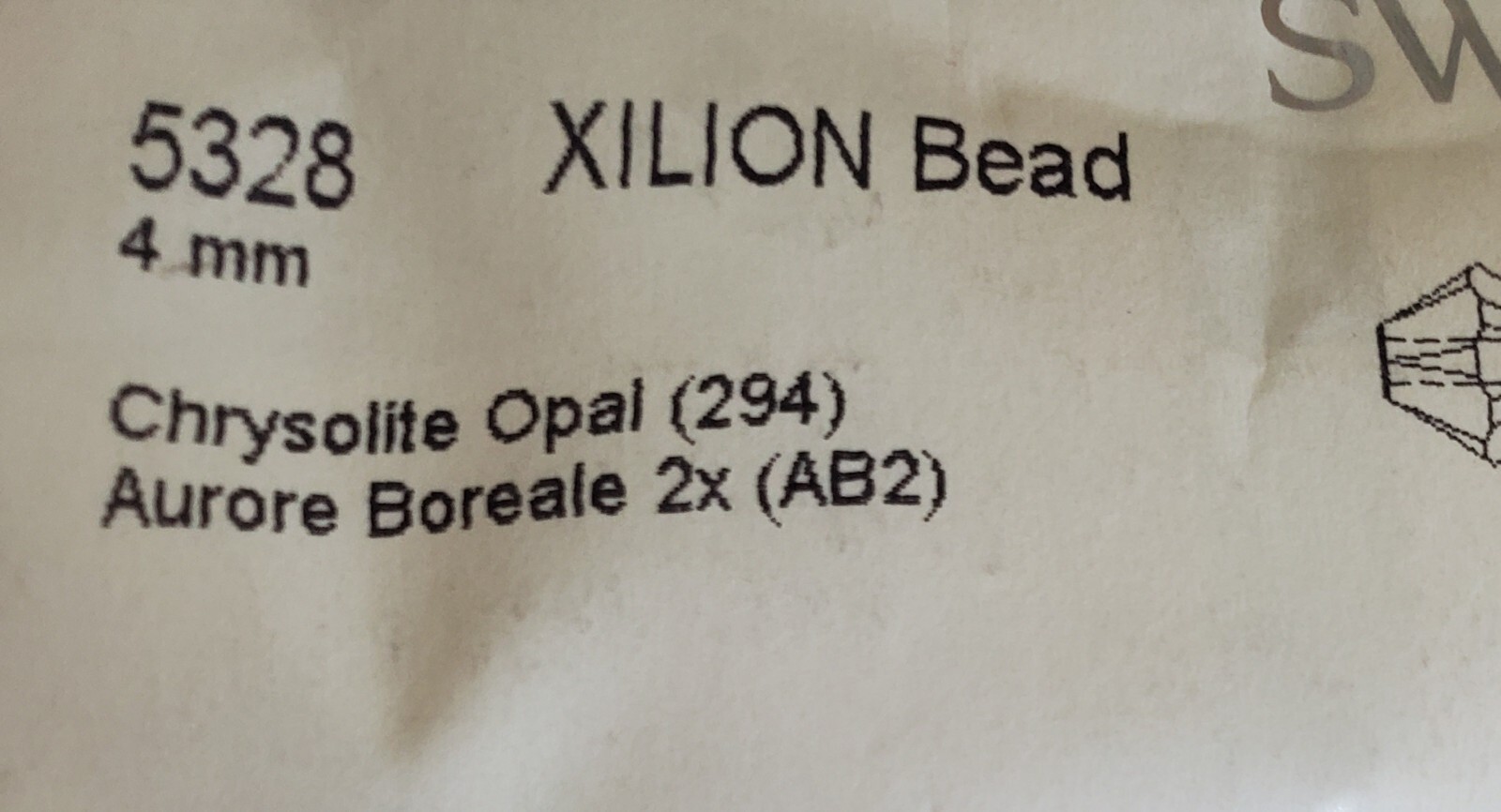 как выглядит Swarovski Crystal 5328 4mm bicone beads, Chrysolite Opal AB2X 24pcs фото