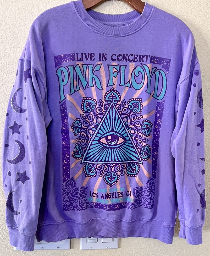 Pink Floyd Live Concert Los Angeles 1975 Purple Band Sweatshirt Size Small