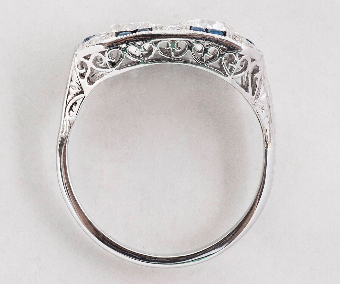 как выглядит Fancy 2 CTW White Round Cut CZ Art Deco Antique Style Engagement 925 Silver Ring фото