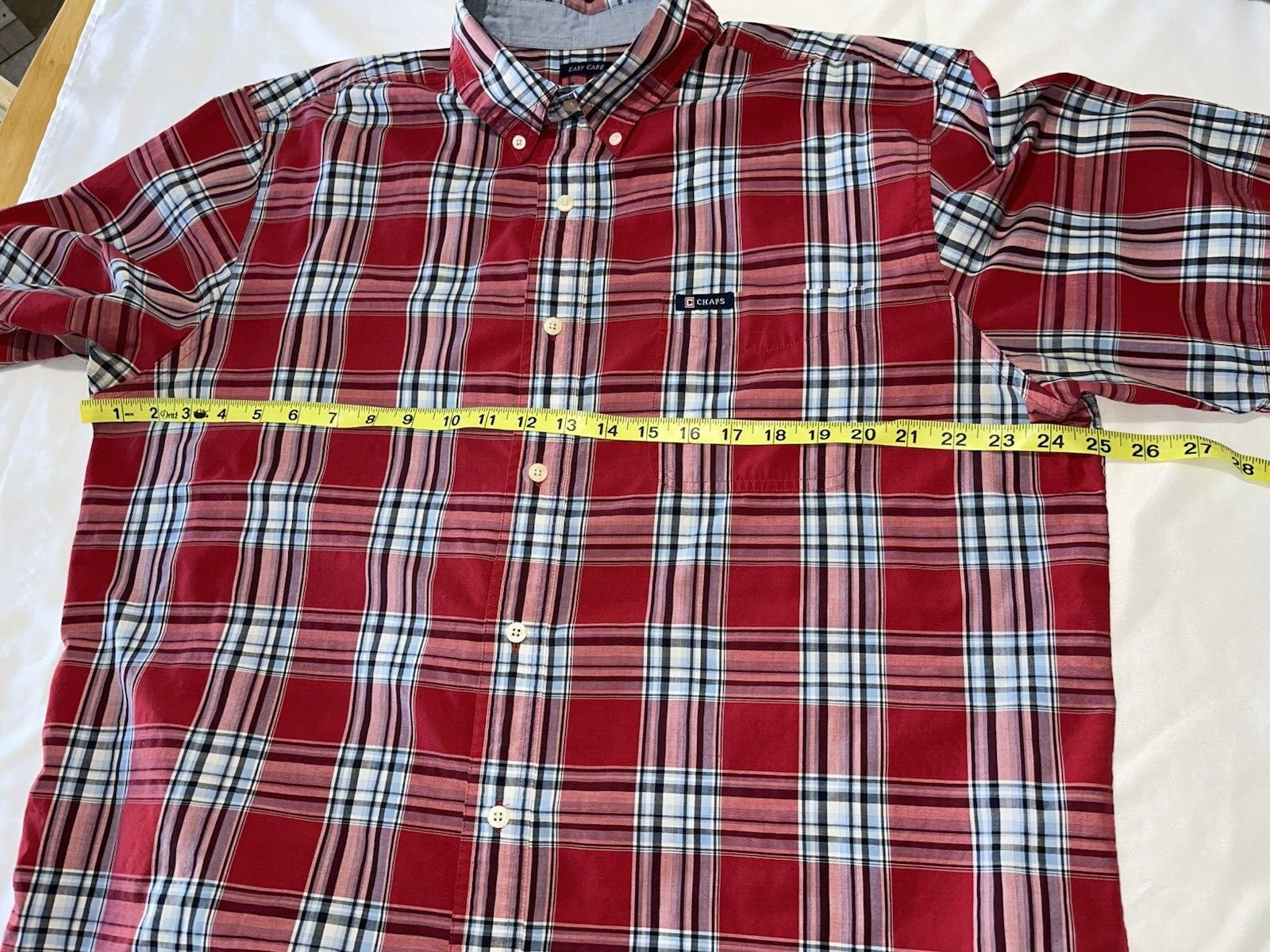 как выглядит Chaps Men s Easy Care Short Sleeve Red Plaid Button Down Shirt Size XL фото