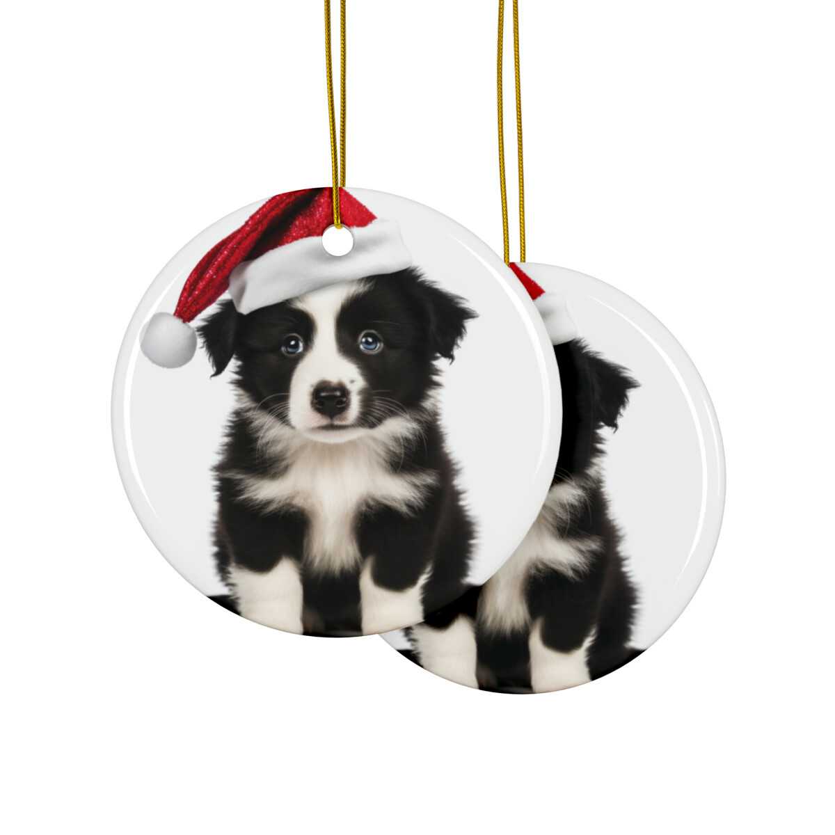 Hanging Ceramic Christmas Tree Ornament - Border Collie Puppy Design