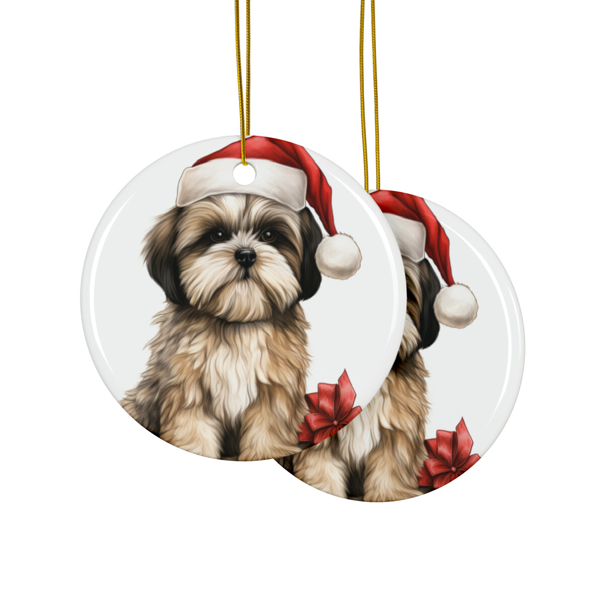 как выглядит Hanging Ceramic Christmas Tree Ornament - Lhasa Apso Puppy Drawing Design фото