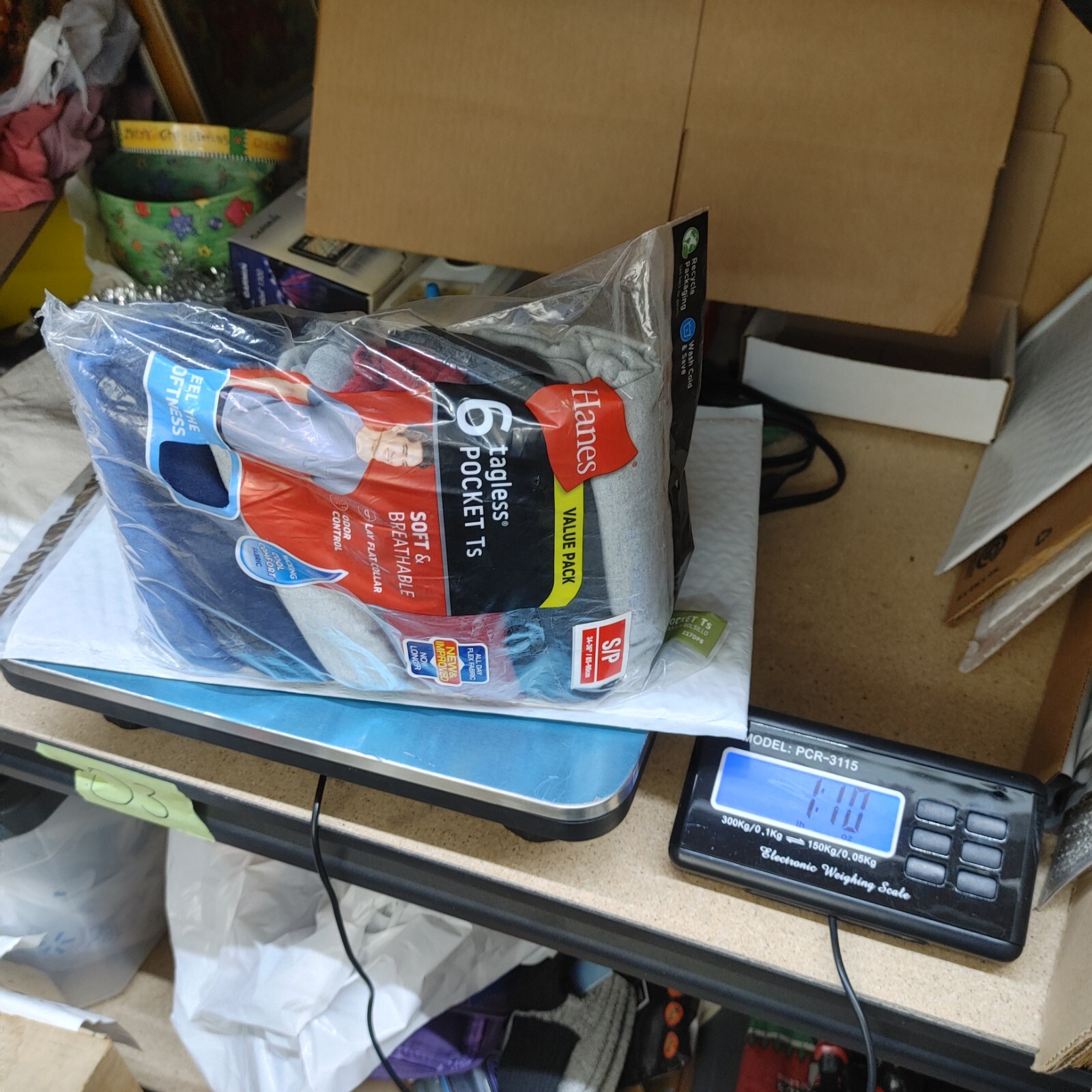 Hanes 6 Tagless Pocket T-Shirts S 34-36 Blue Red Gray Moisture Wicking