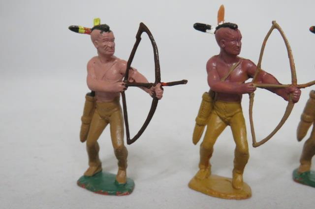 как выглядит MARX 1960s - 4 x Indian Warriors - 54mm Plastic Figures RARE PAINTED фото