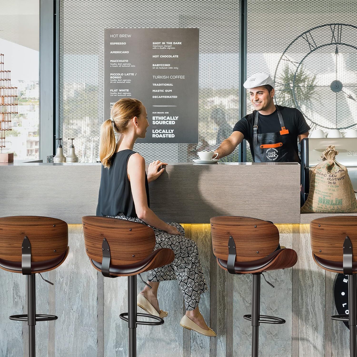 Comfortable Bar Stool: The modern bar stool is made of PU leather upholstery and bentwoo
