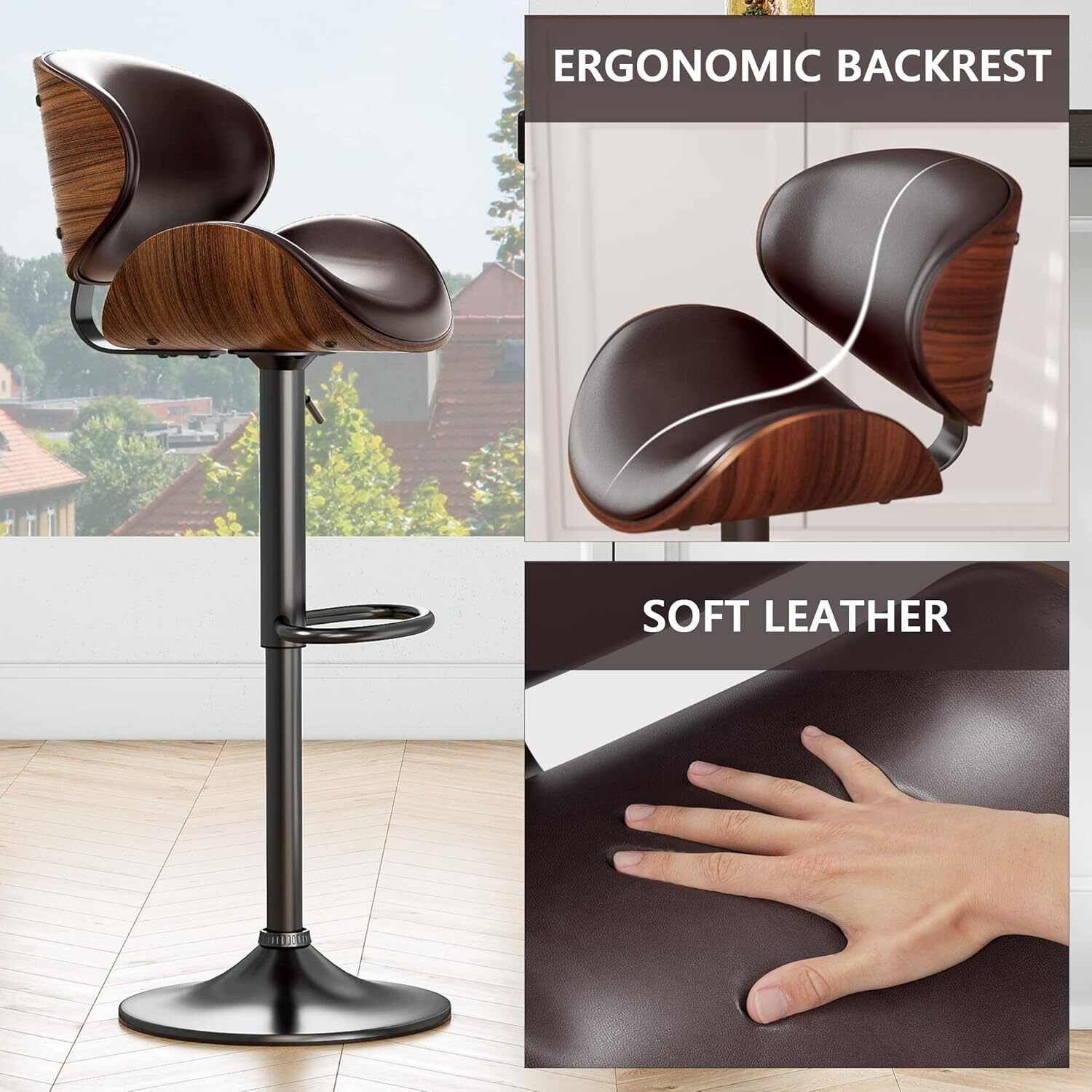 Bar Stools Set of 4, Bentwood Adjustable Height Swivel Bar Stools, PU Leather