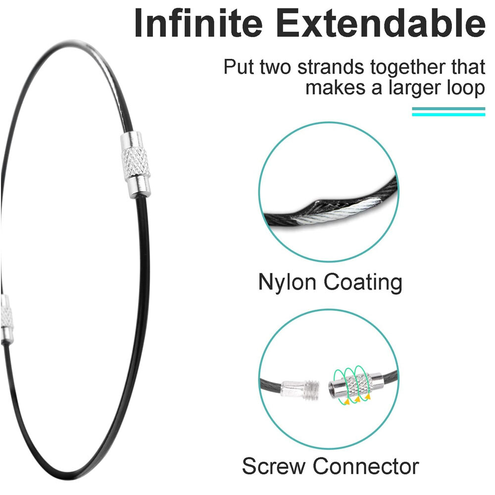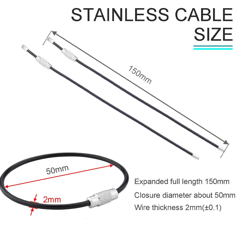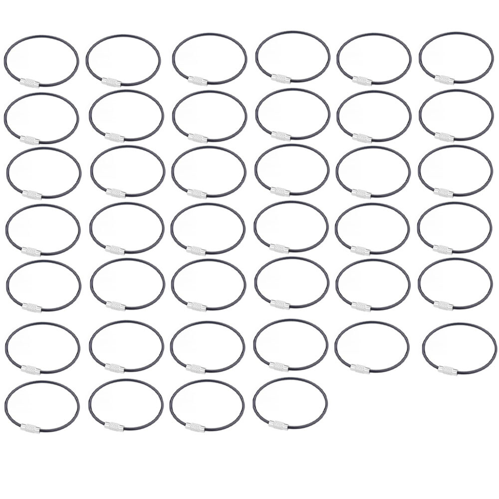 40PC Black 2.0mm 150mm Wire Keychain Cable Metal Luggage Tag Loops Key Rings US