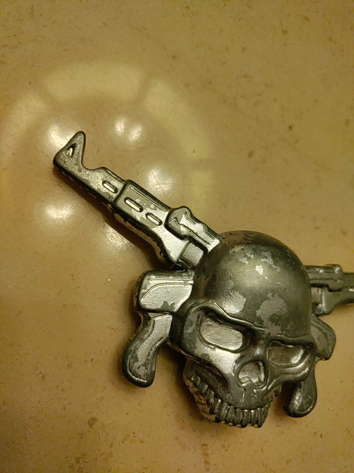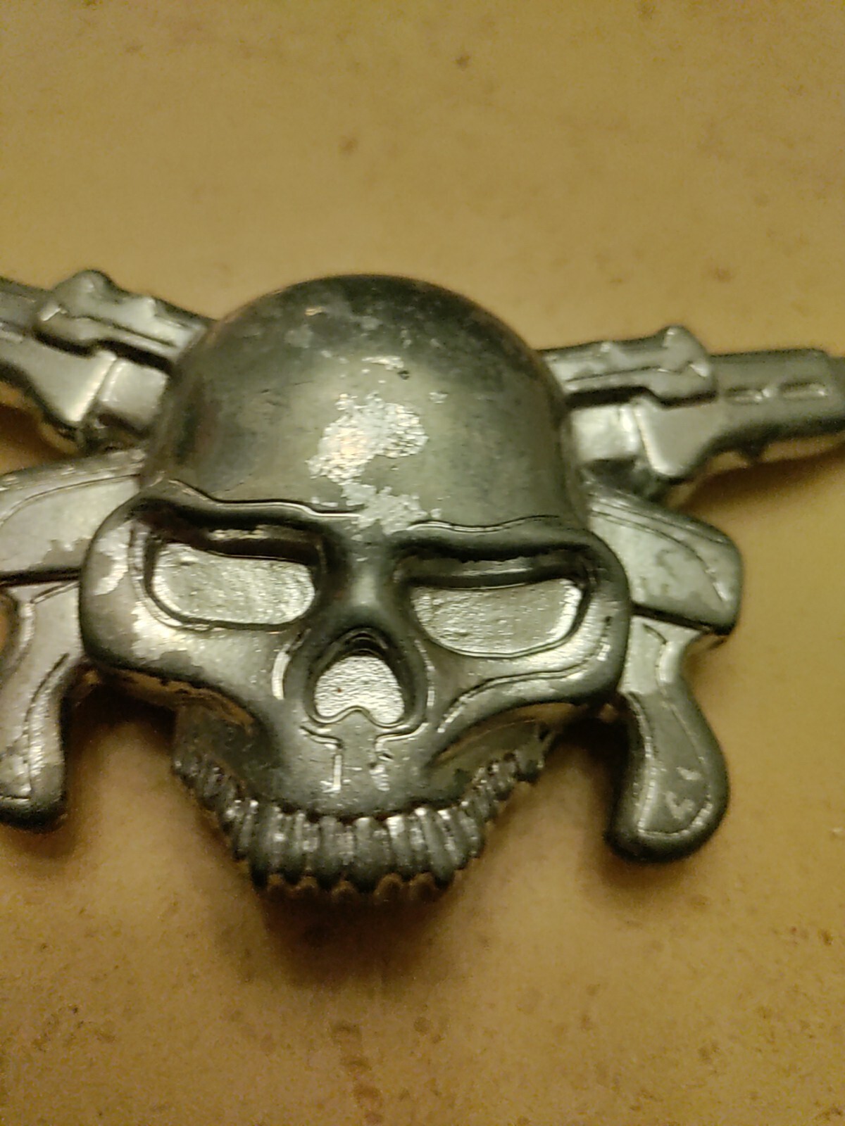 Pewter Silver Skull Dual Machine guns Belt Buckle Biker Flakey Finish Grunge