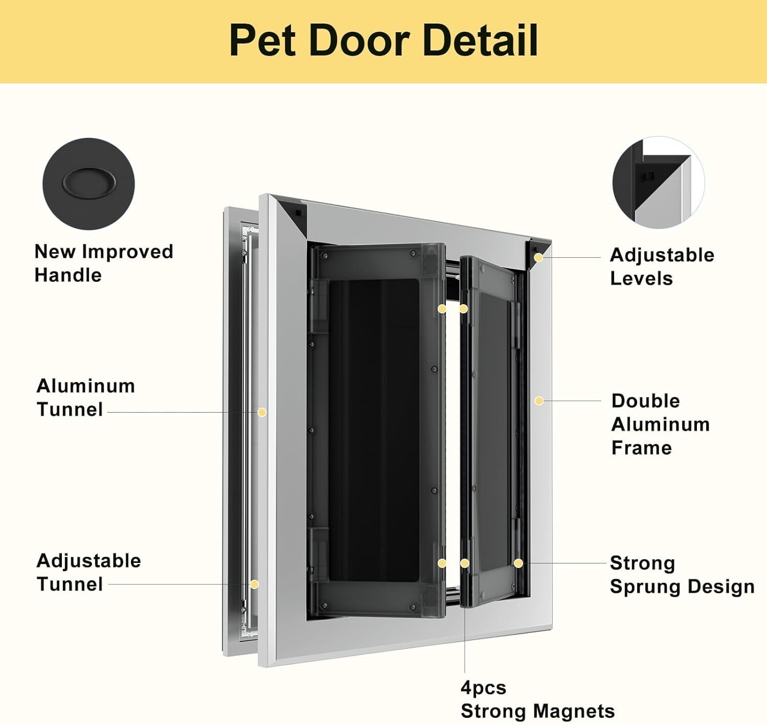Aluminum Medium Dog Door for Exterior Door,Strong Double Magnetic Flaps medium