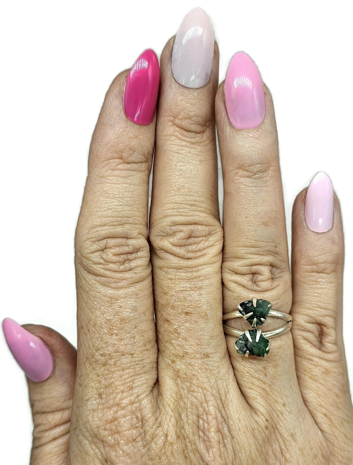 как выглядит Rough Emerald Ring, May Birthstone, Size O, Sterling Silver, Natural Gemstones фото