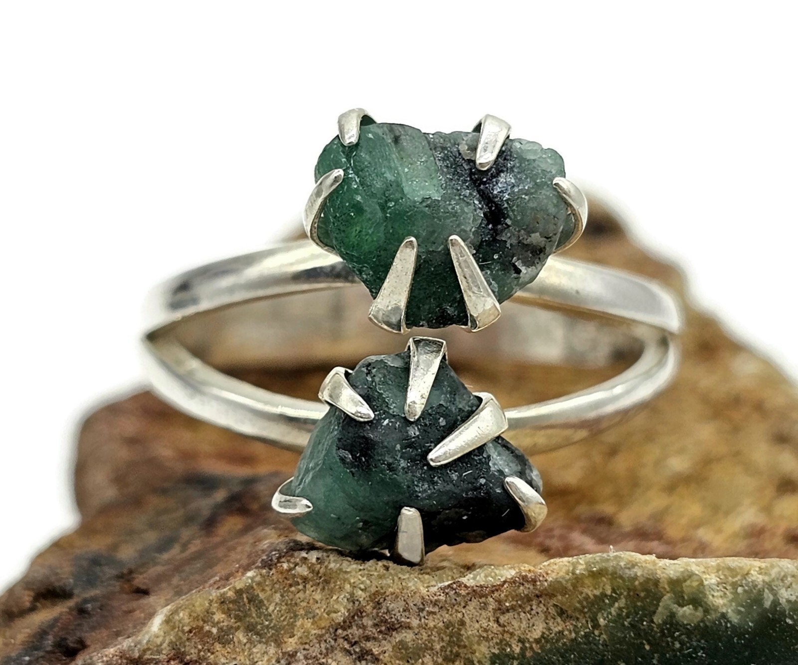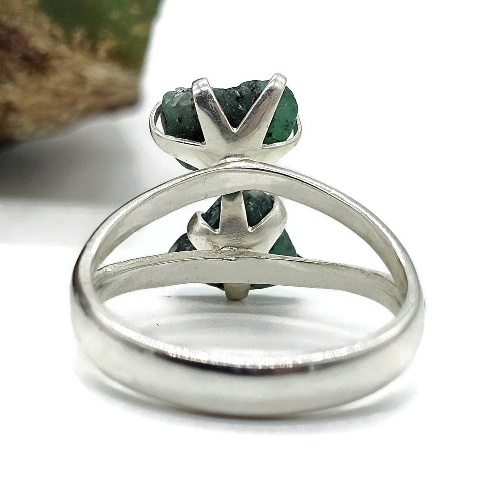 Rough Emerald Ring, May Birthstone, Size O, Sterling Silver, Natural Gemstones