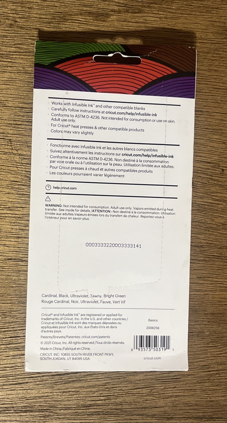 Cricut Infusible Ink Markers 5 Pack Markers 2006256 Red,Green,Blue Brown,Black