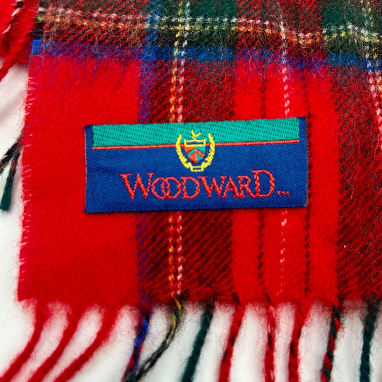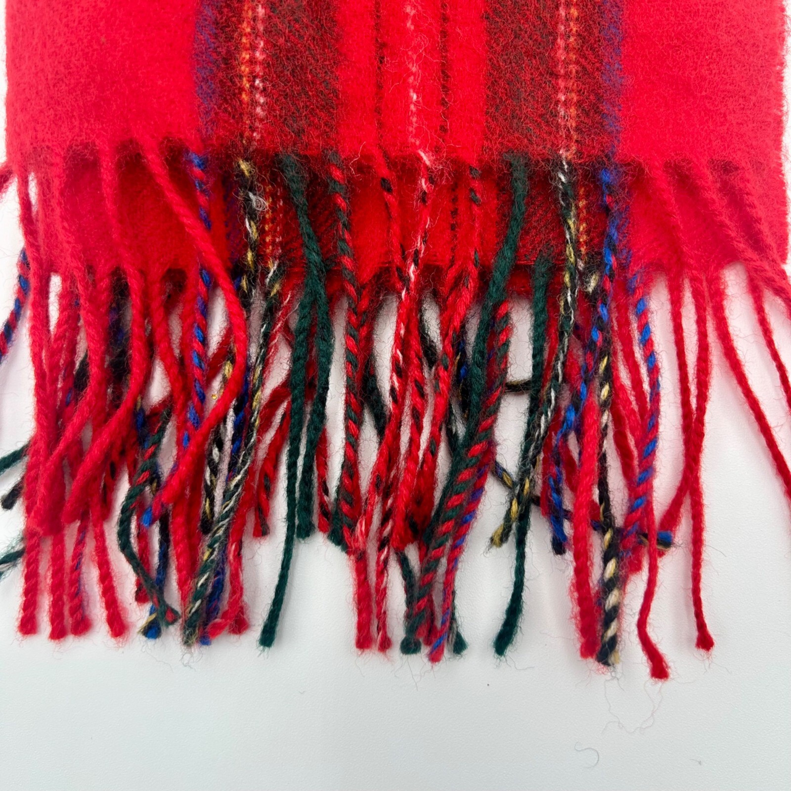 как выглядит Vintage Woodward 100 Pure Lambswool Red Plaid Scarf With Fringe Germany Classic фото