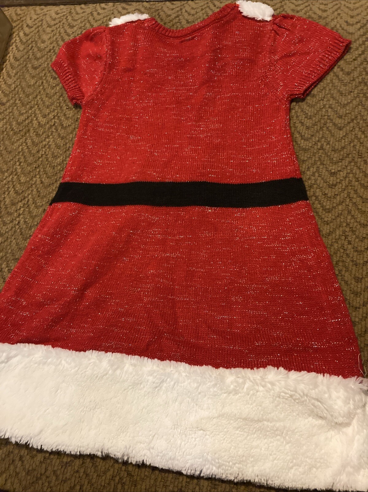 как выглядит GIRLS Holiday Time Party dress 6/6x Mrs Santa Claus Red White Sweater Dress фото