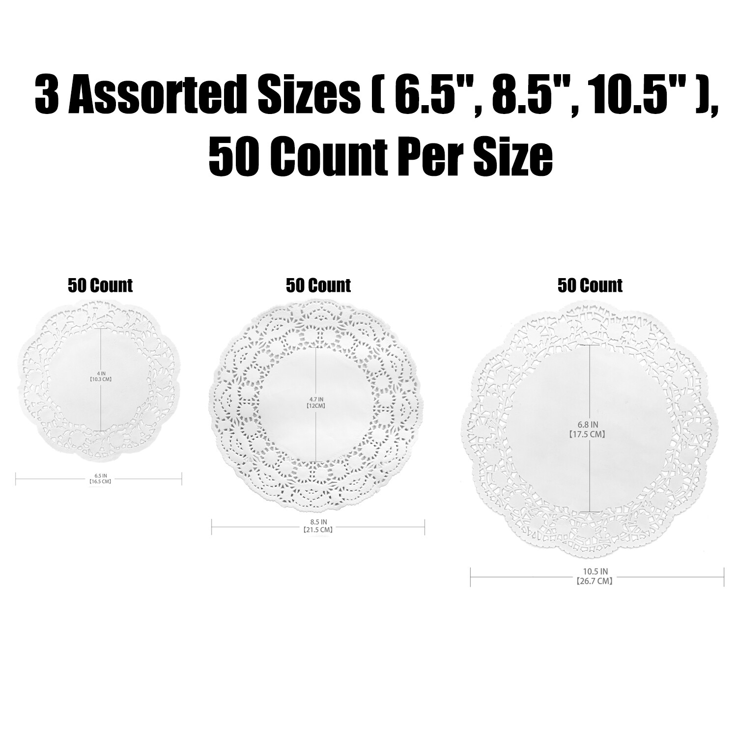 • 5MLGgoods White Paper Doilies, 6.5, 85, 10.5in Assorted 150 pcs Per Size Round
