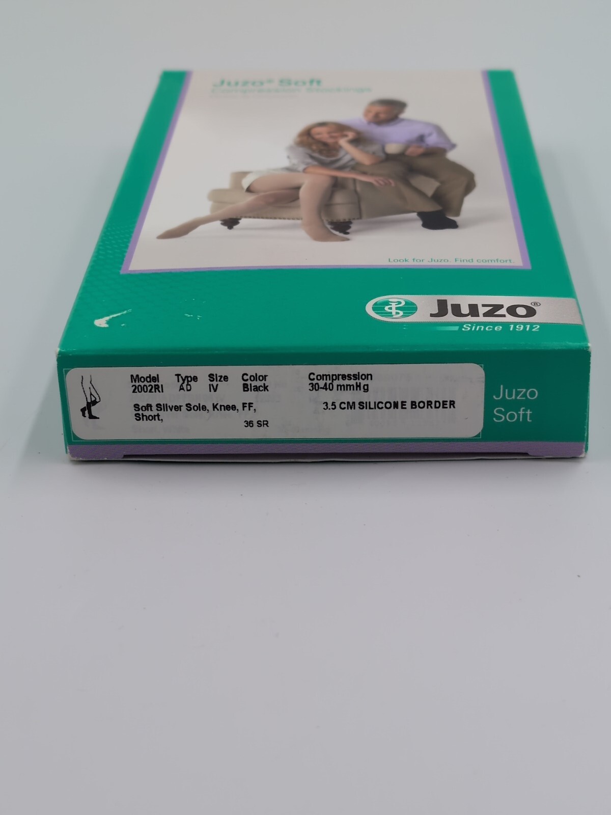 NEW JUZO SOFT 2002RI 30-40MMHG AD COMPRESSION BLACK KNEE HIGH SILICONE SIZE lV