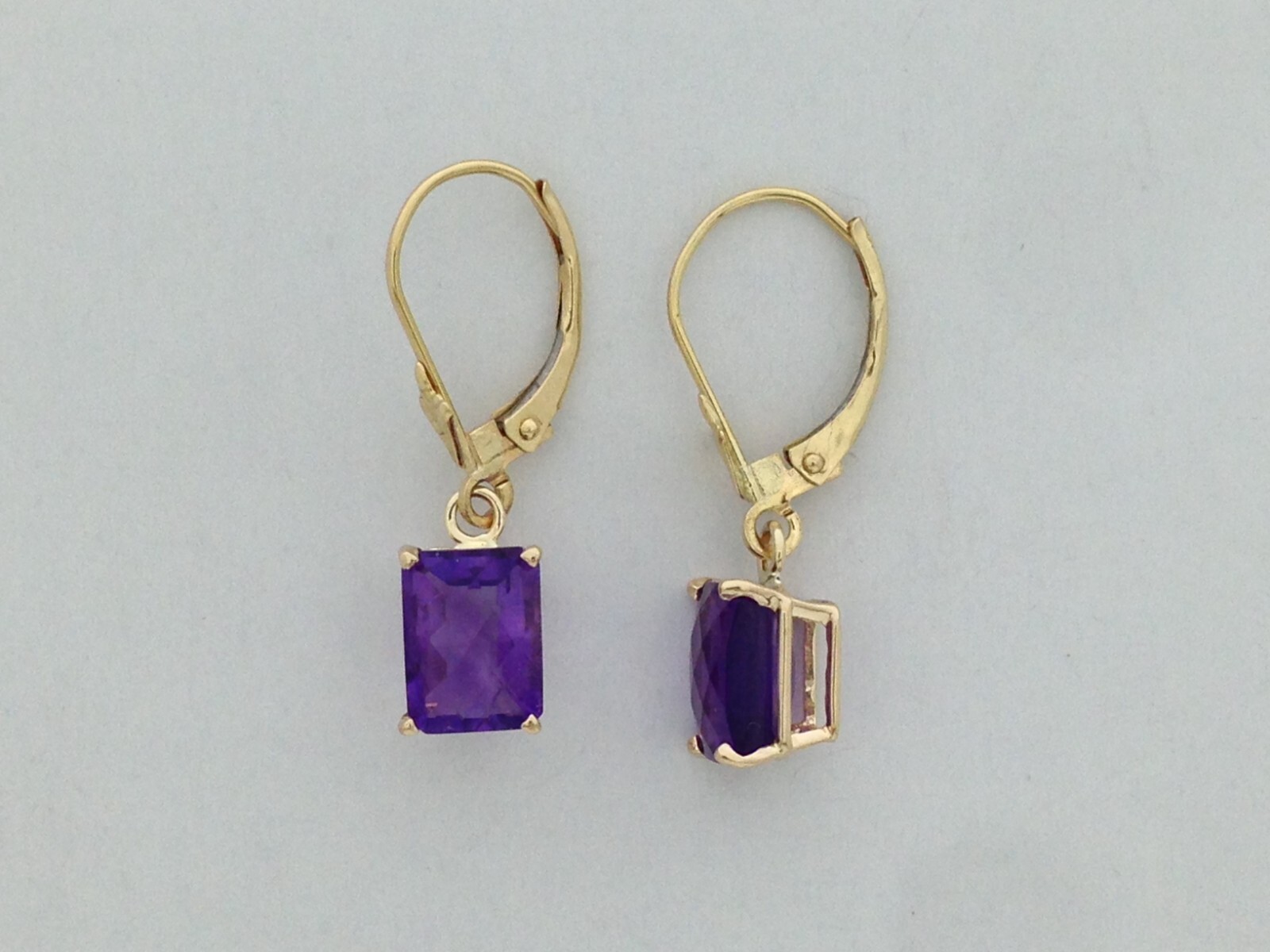 как выглядит Natural Amethyst Dangle Earrings Solid 14kt Yellow Gold фото